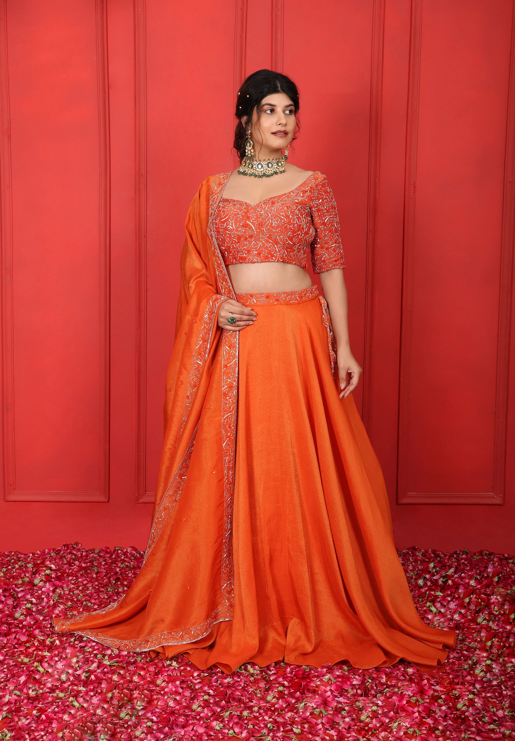 Blouse Length- 14.5" , Sleeves- 11" , Lehenga- 44"