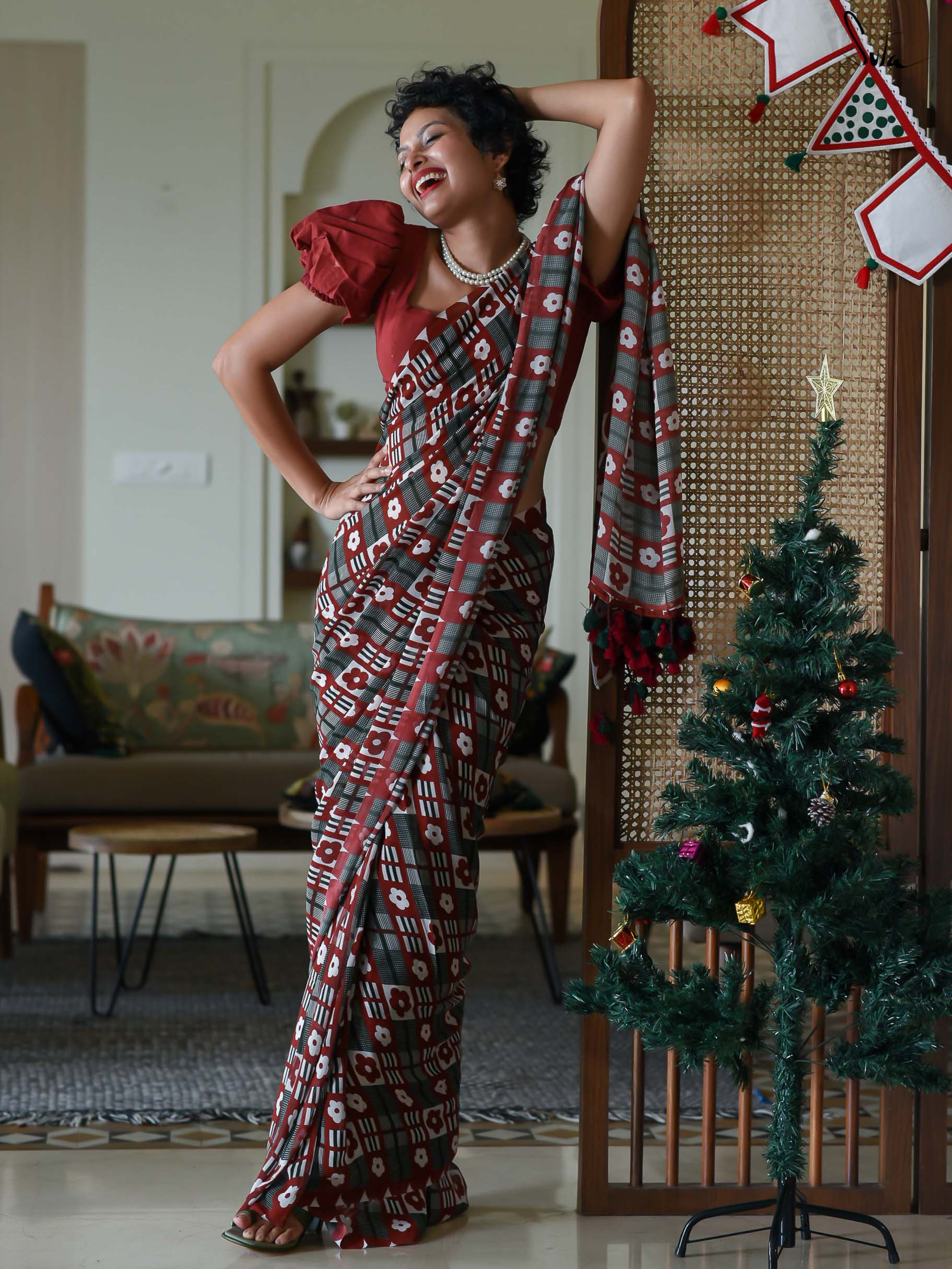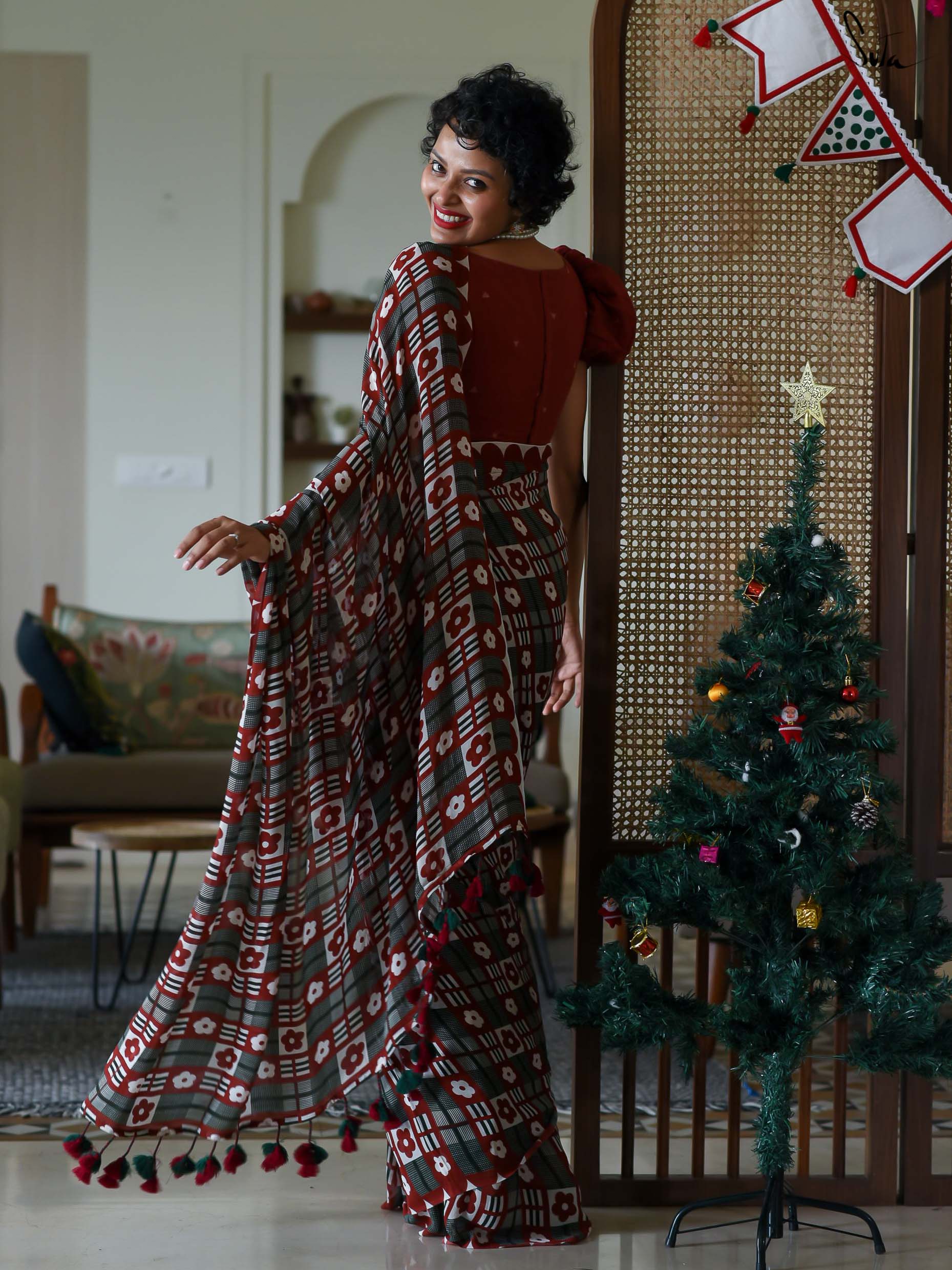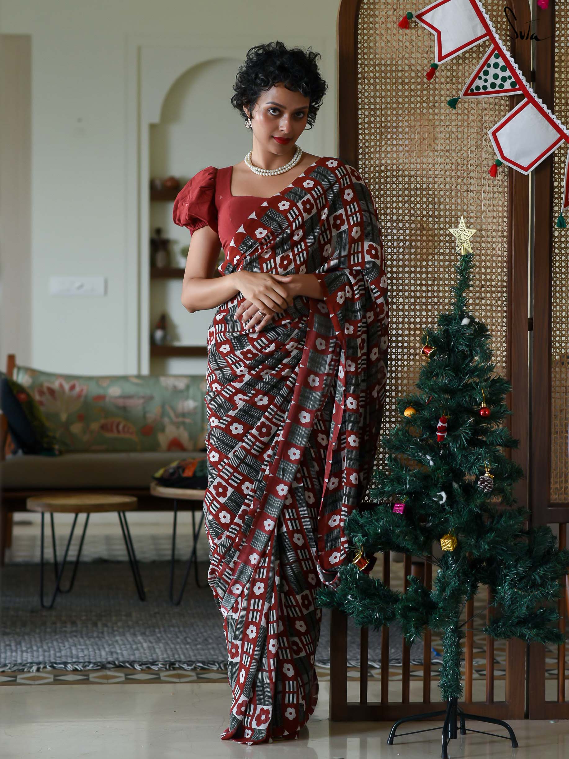 Blouse: The model is wearing XS size blouse called Gulab Jamun