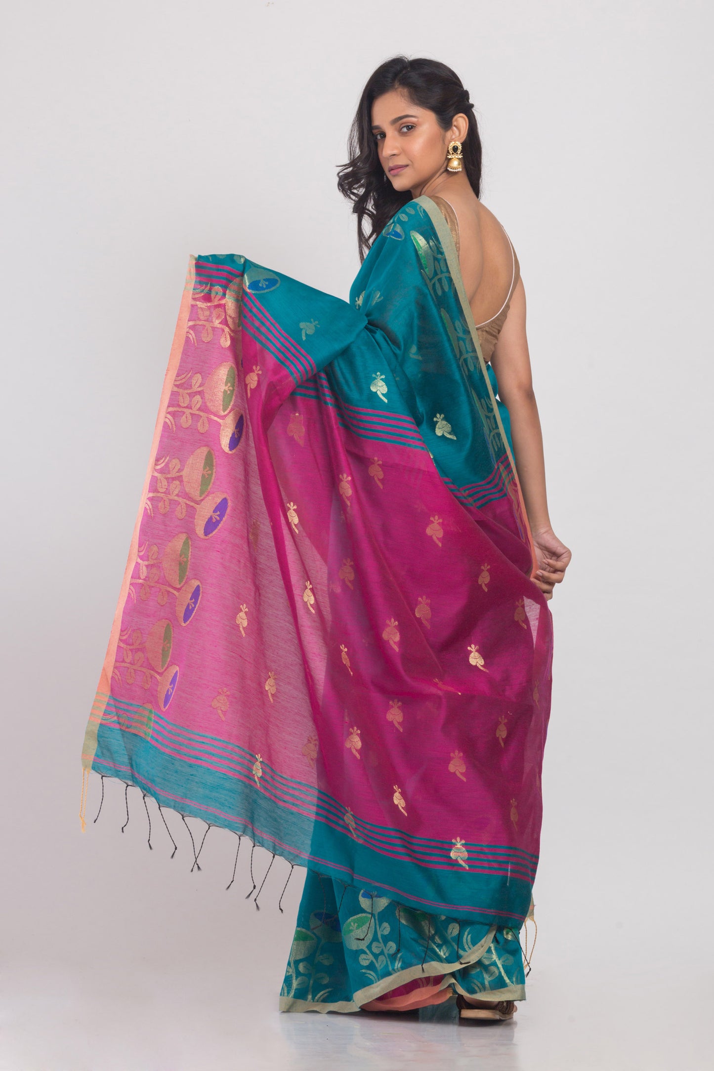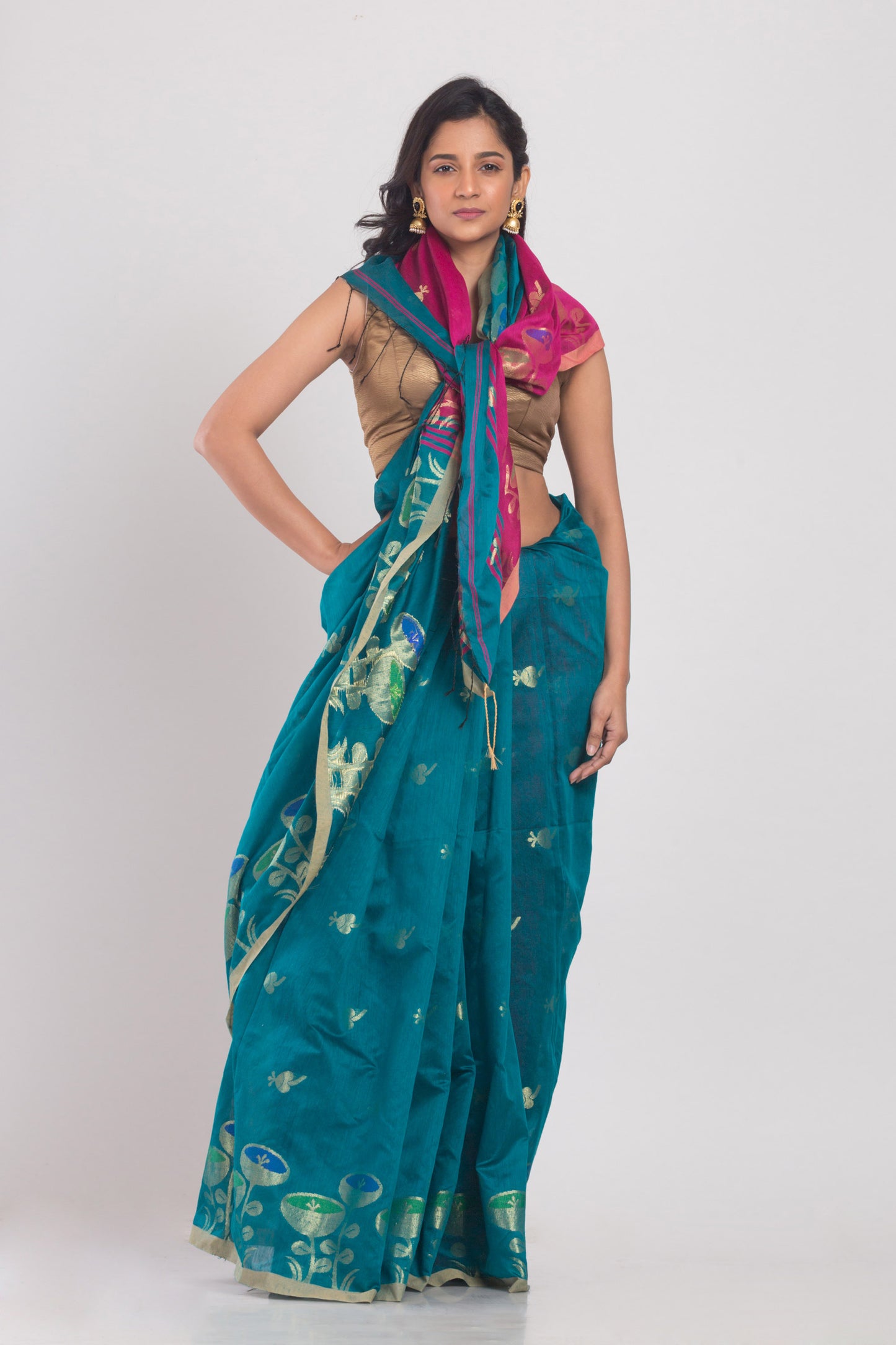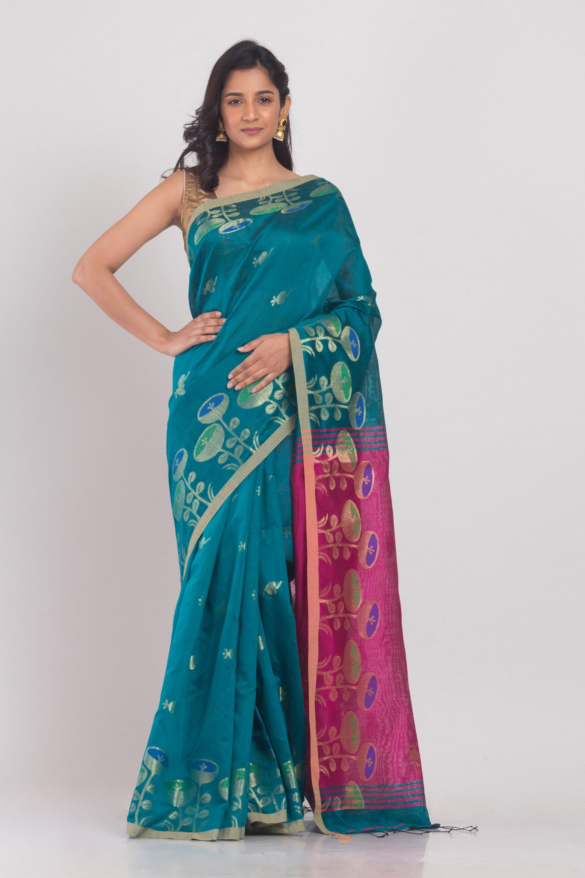 Teal Blended Cotton Handloom Saree