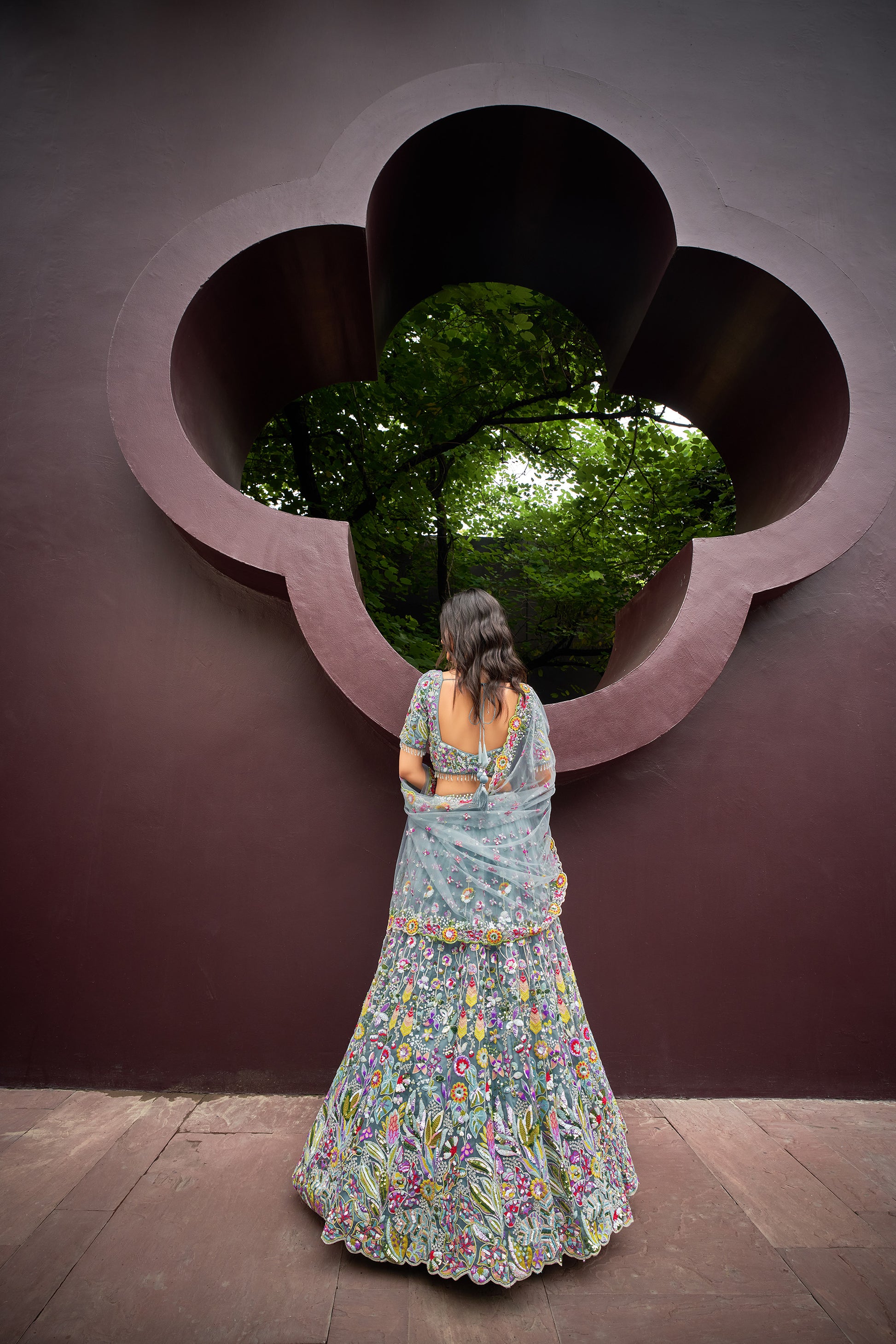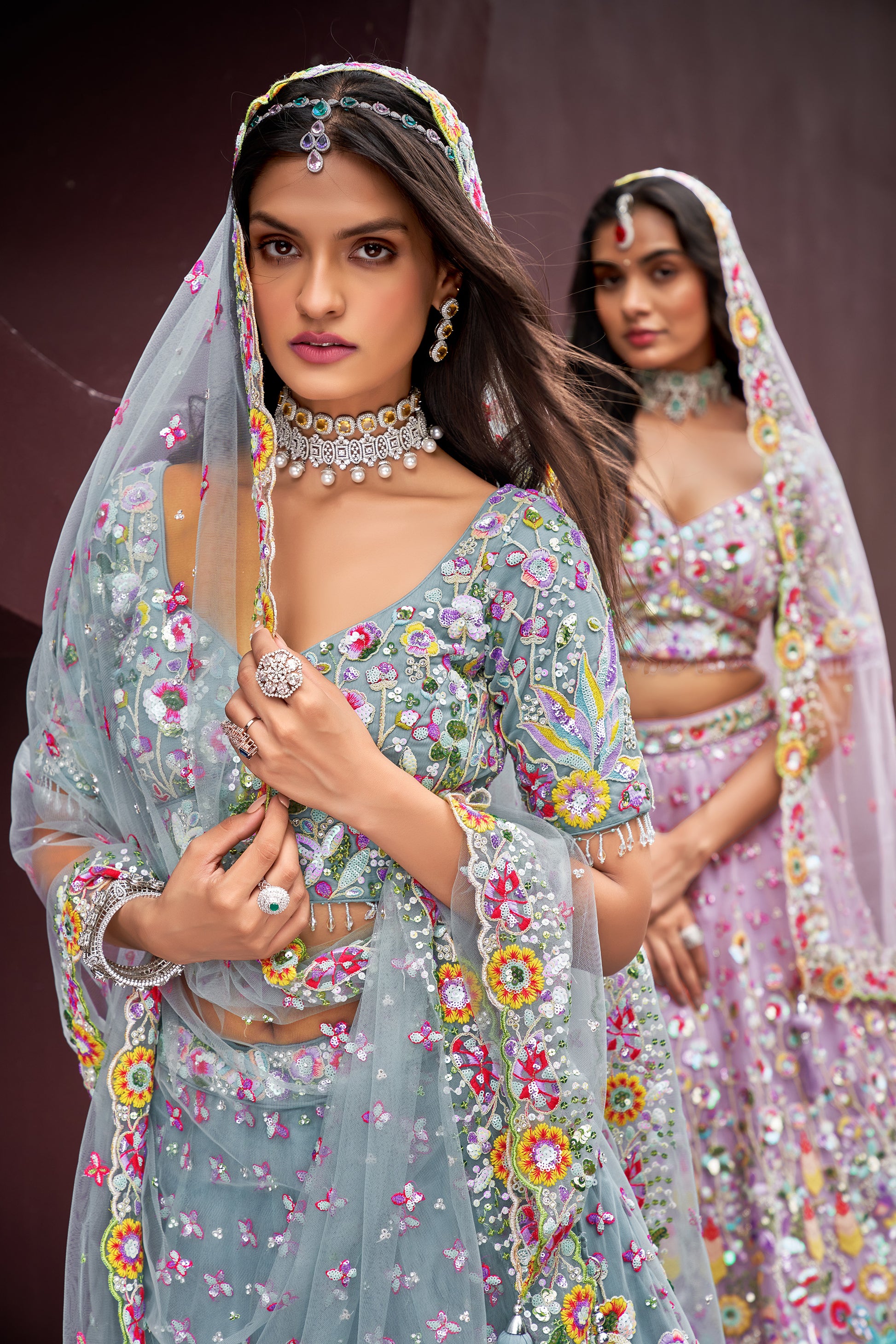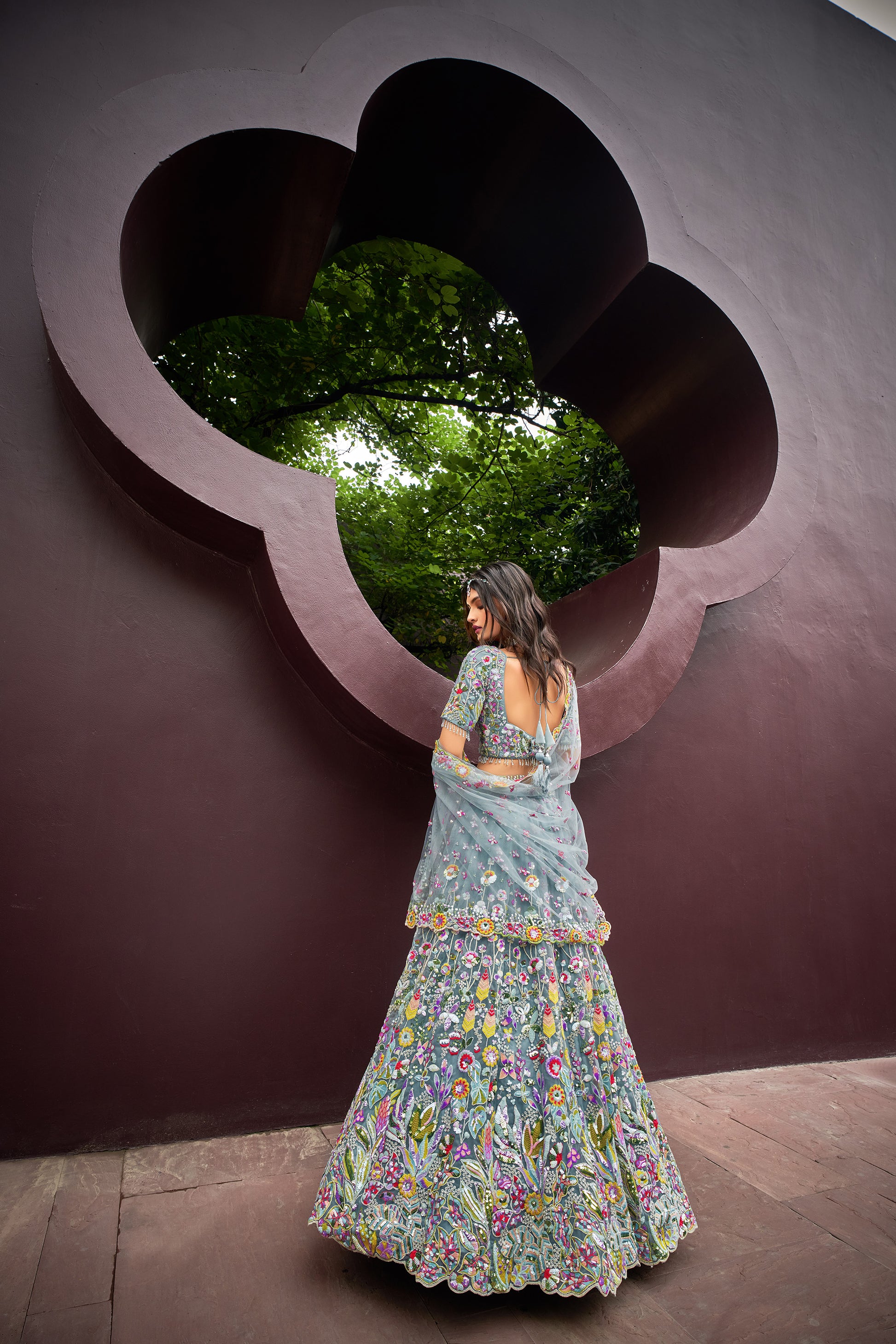 Turquoise blue Net Zarkan & heavy Sequin embroidery Designer Lehenga choli & Dupatta