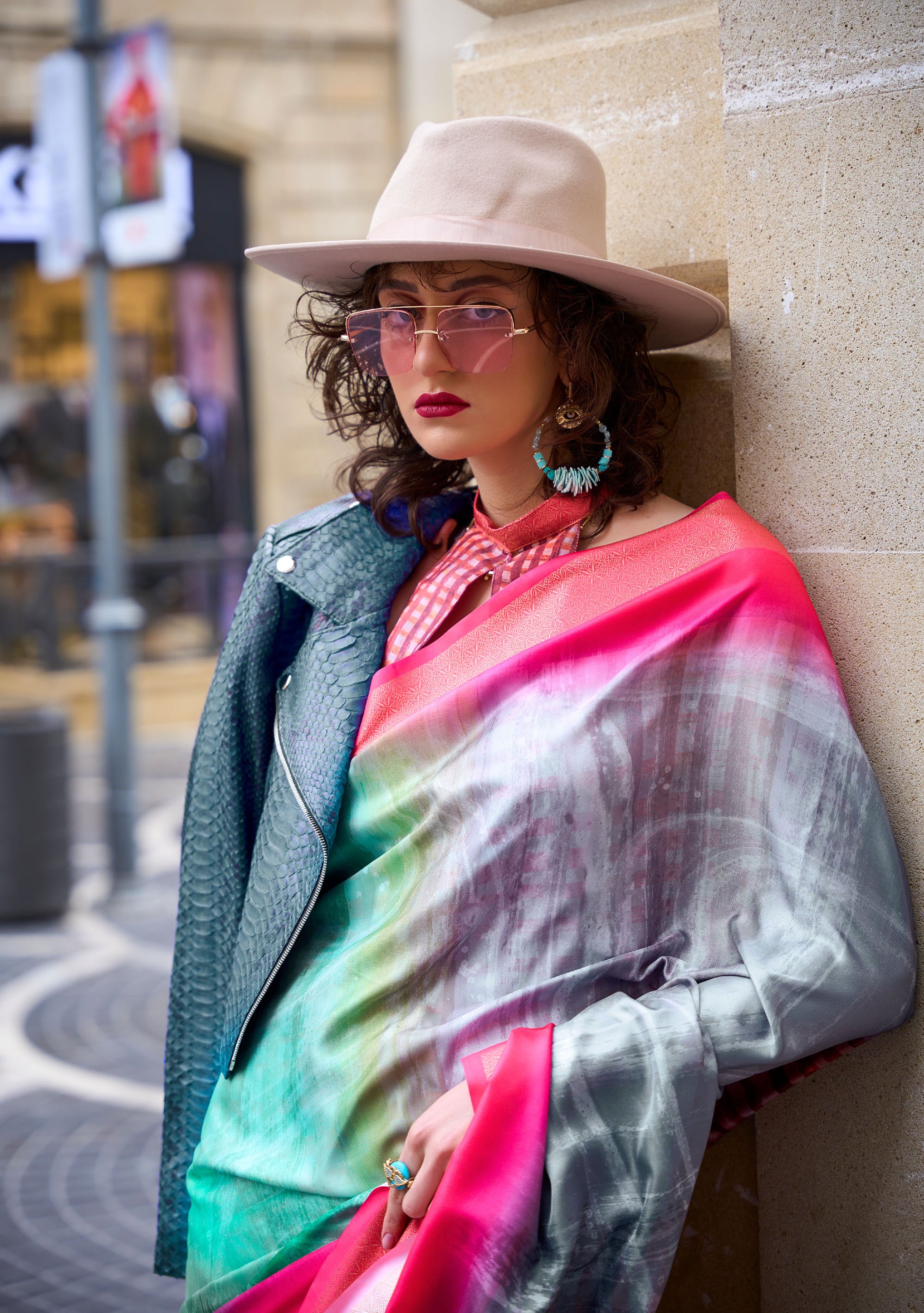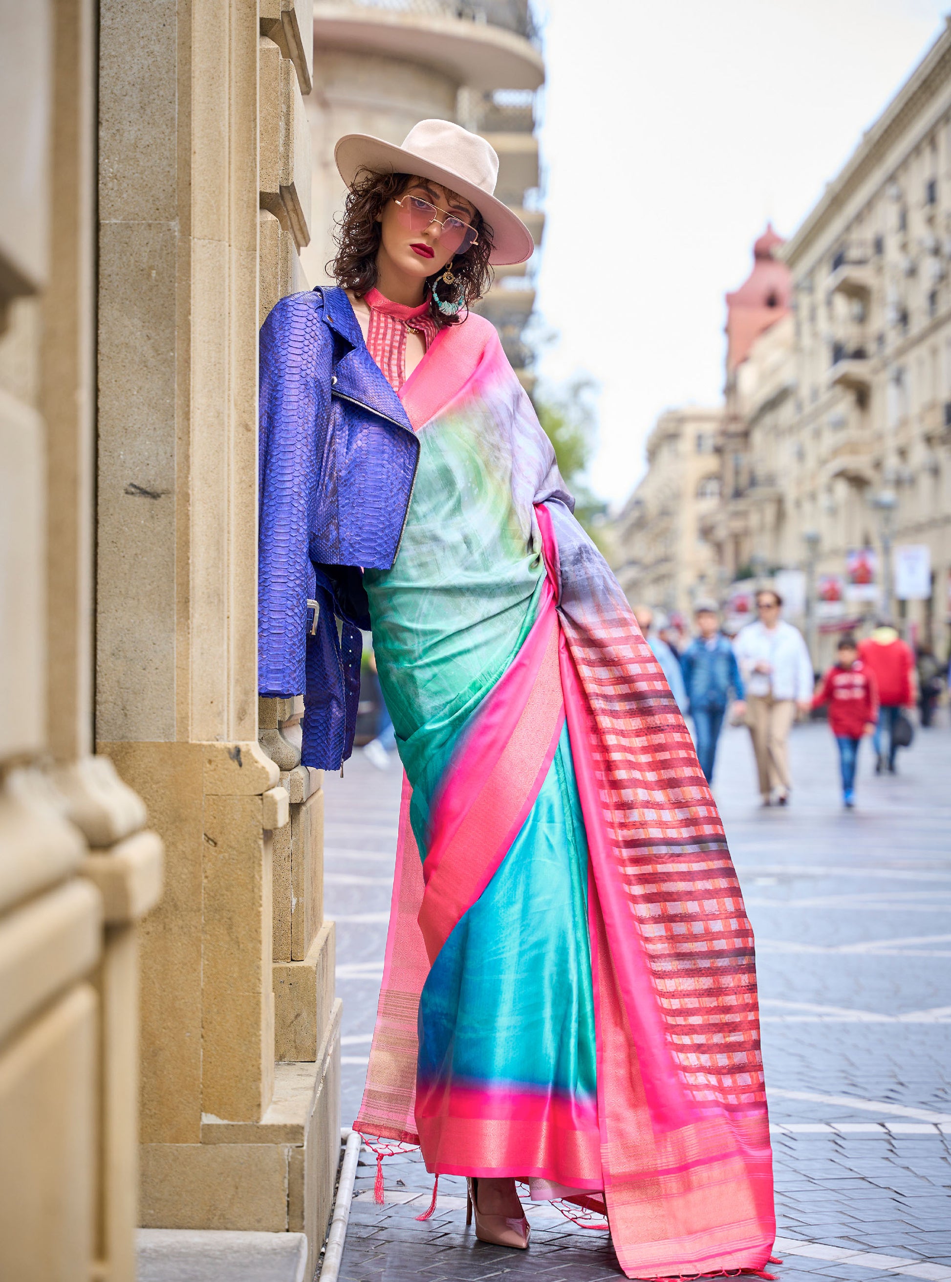 Turquoise Kopper Pure Gaji Silk Handloom Saree