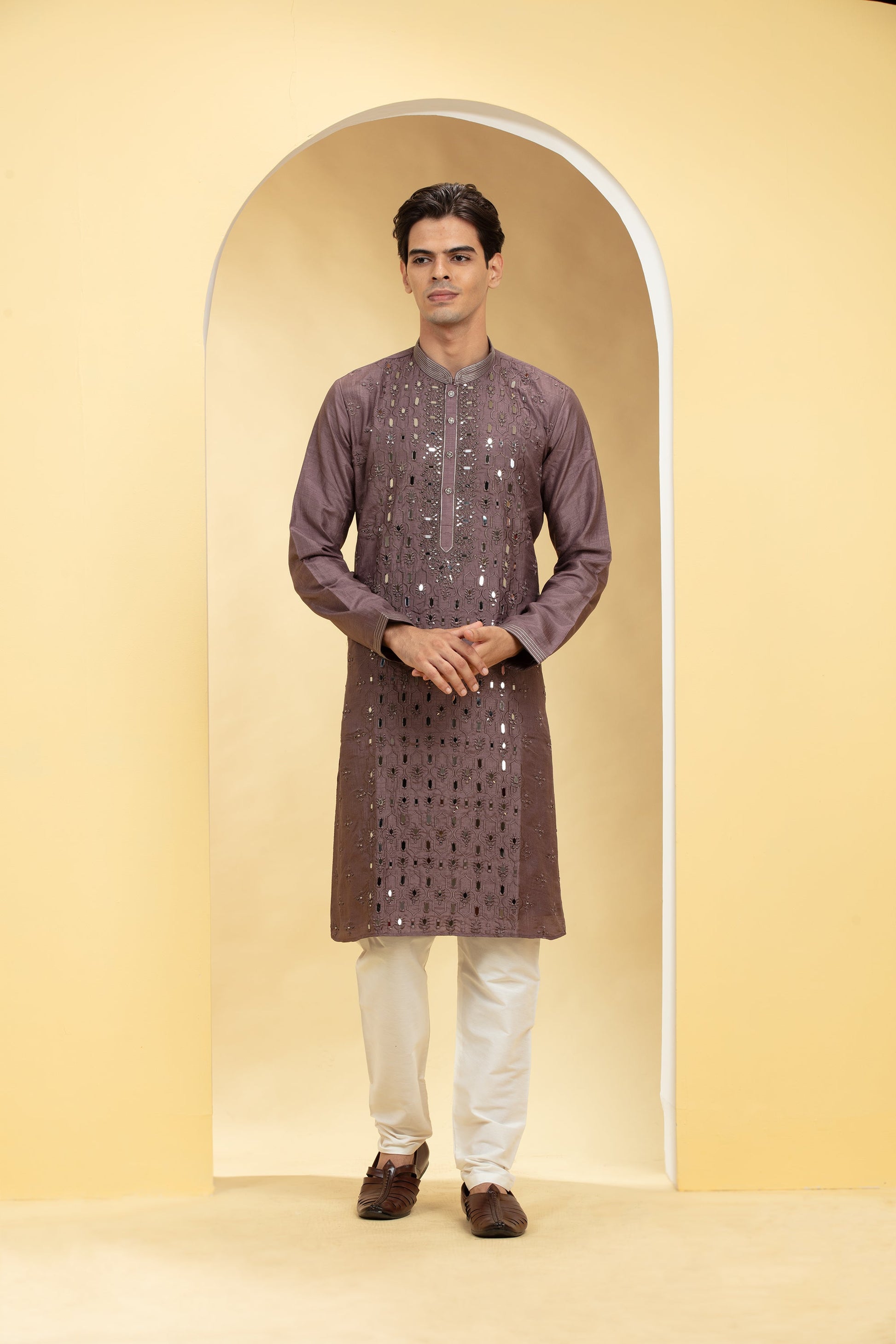 Umber brown Lucknowi kurta pajama Set with Mirror and Thread work