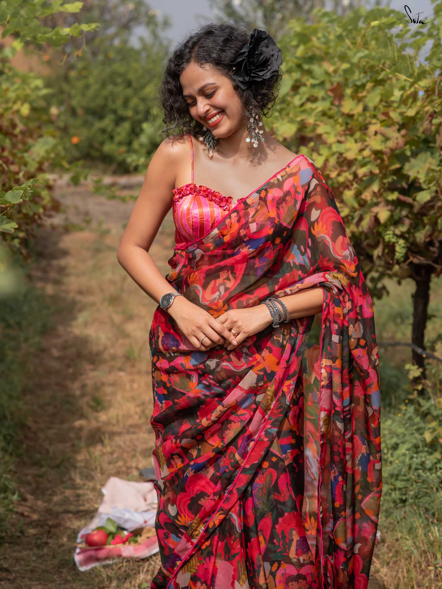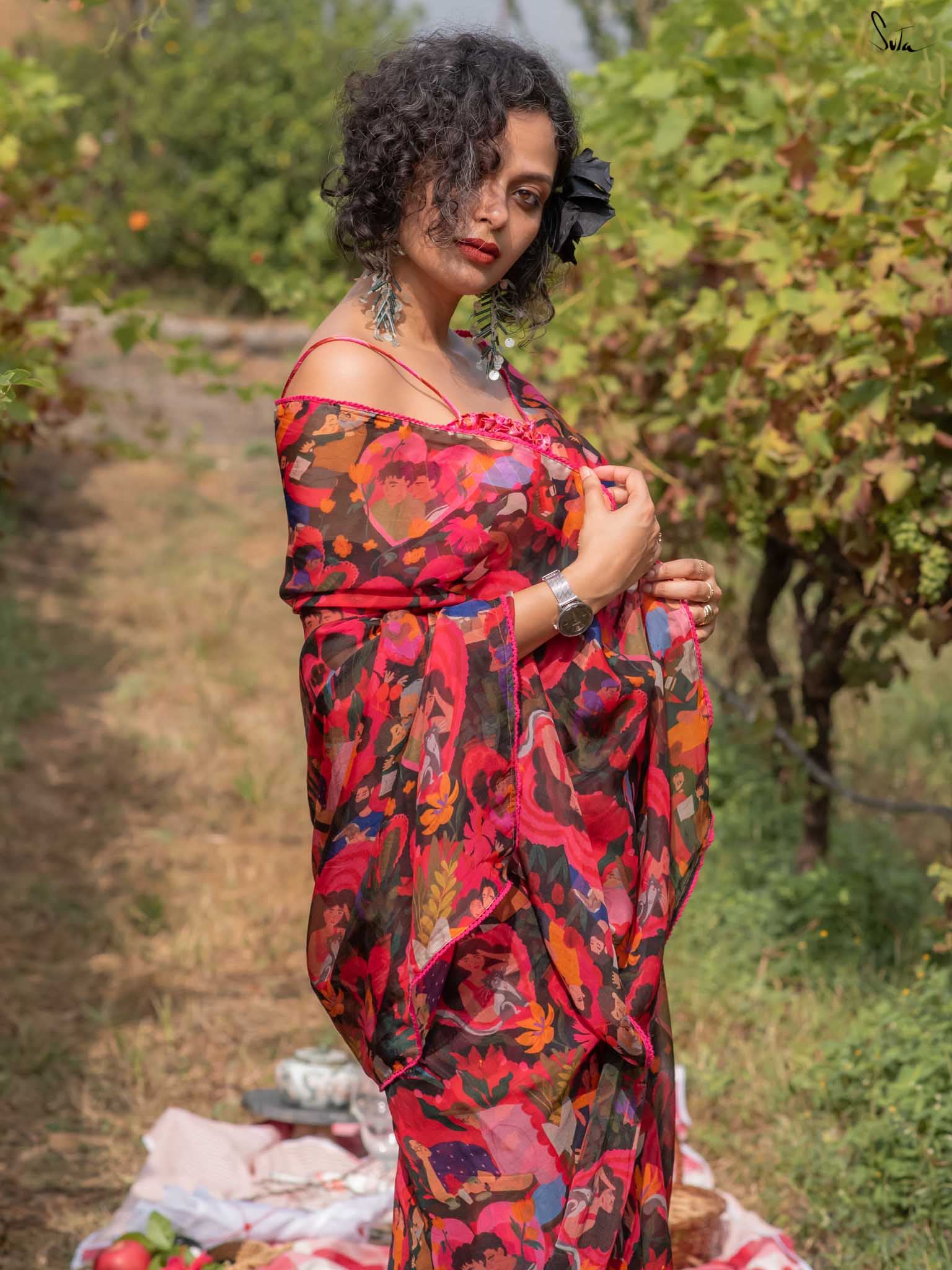 Universal Pyaar saree, Mast Magan (blouse), Grandeur (Earrings) is your perfect trio for an effortless charm.