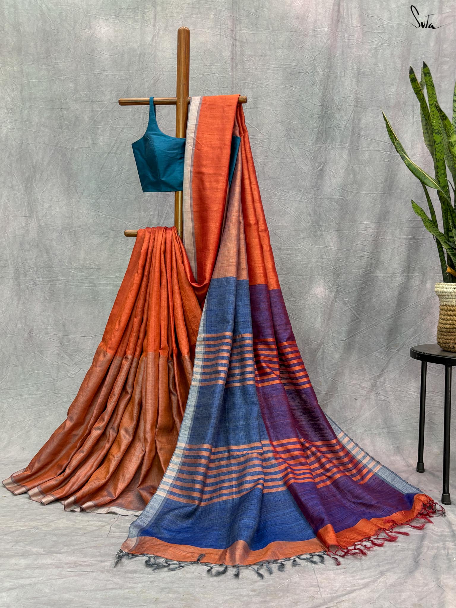 Wear a piece of elegance with this Tussar silk saree with cutwork patchwork designs that make for a gorgeous, spotlight-ready drape!