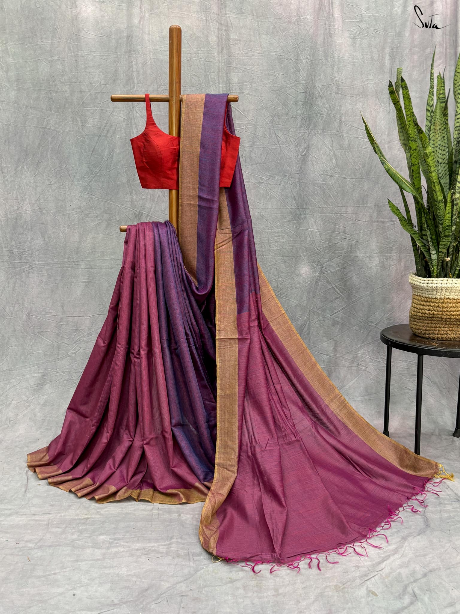 This saree has a running blouse piece woven into it.