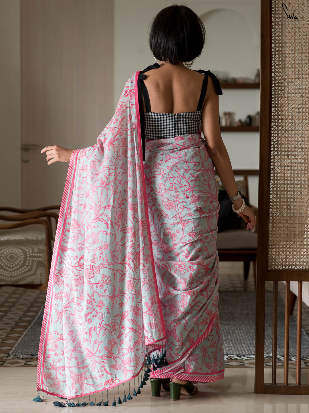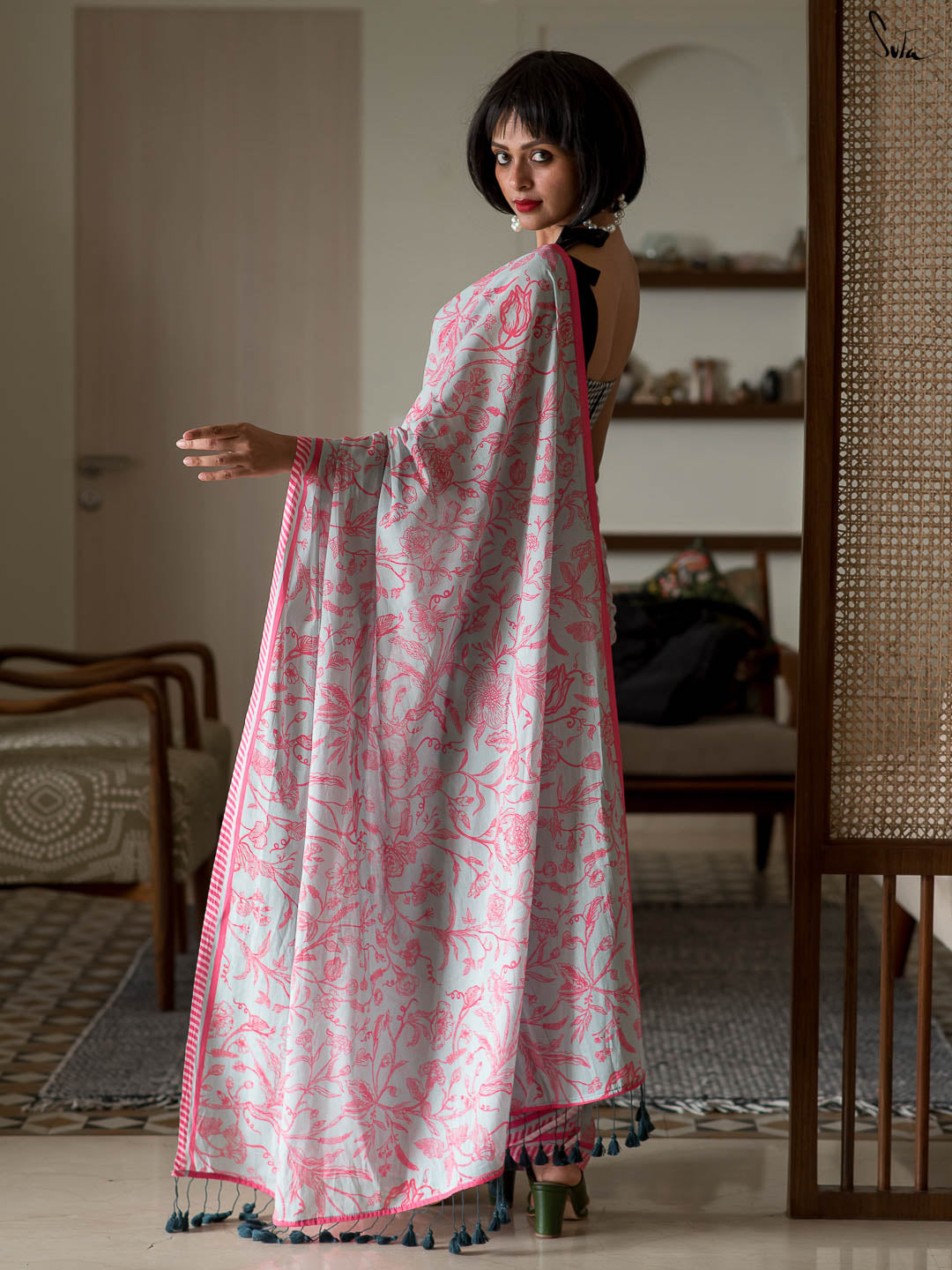 The mul cotton is what we call ˜made in heaven at Suta. Known in West Bengal as mul mul, the fabric is buttery soft and delicately beautiful. The weave of this fabric is very fine, and this lends a very fluid texture to it that makes draping it a breeze. It is truly like a hug that wraps you in its love!