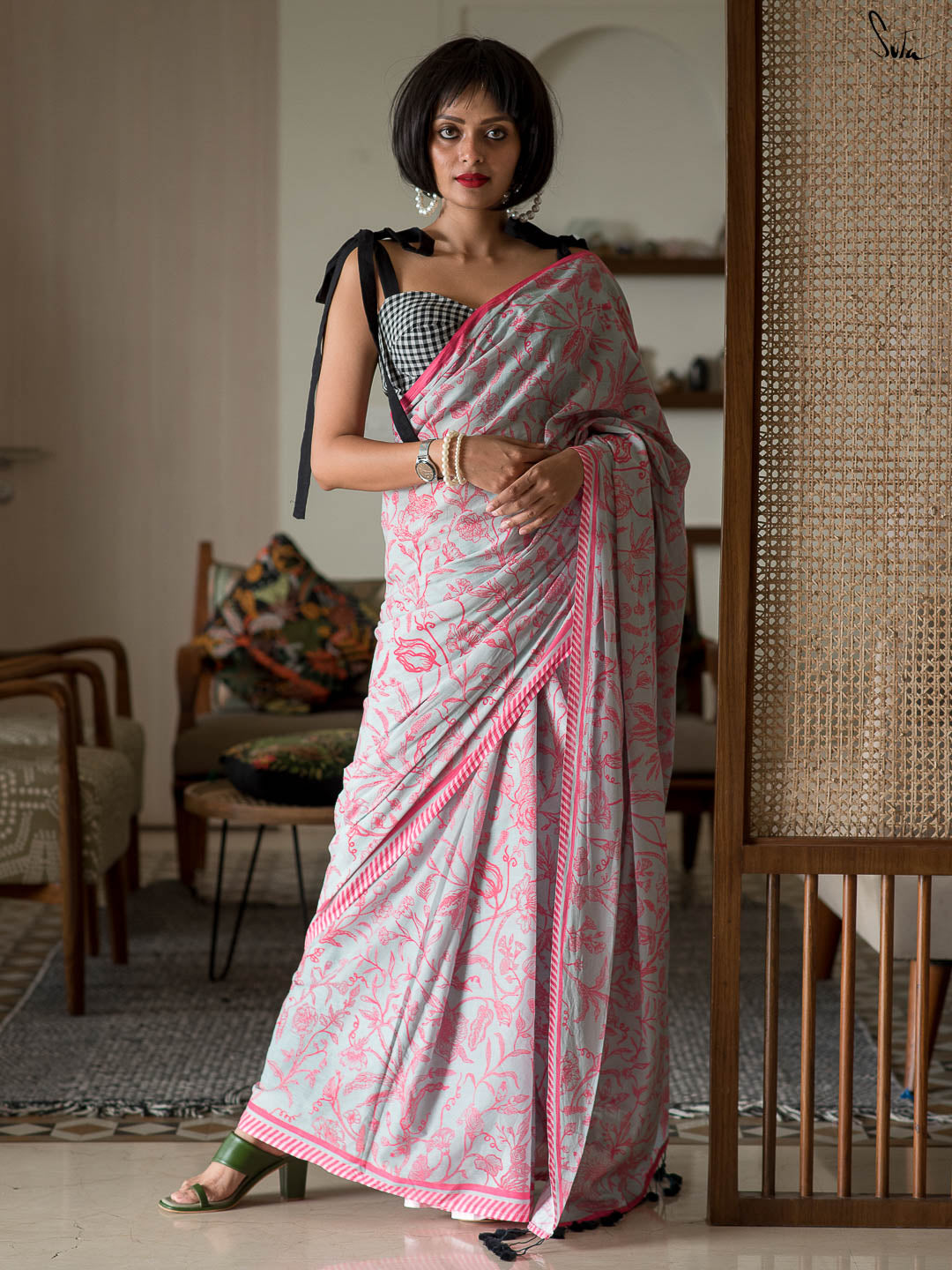 Note: The model is wearing a blouse is from our in house collection.