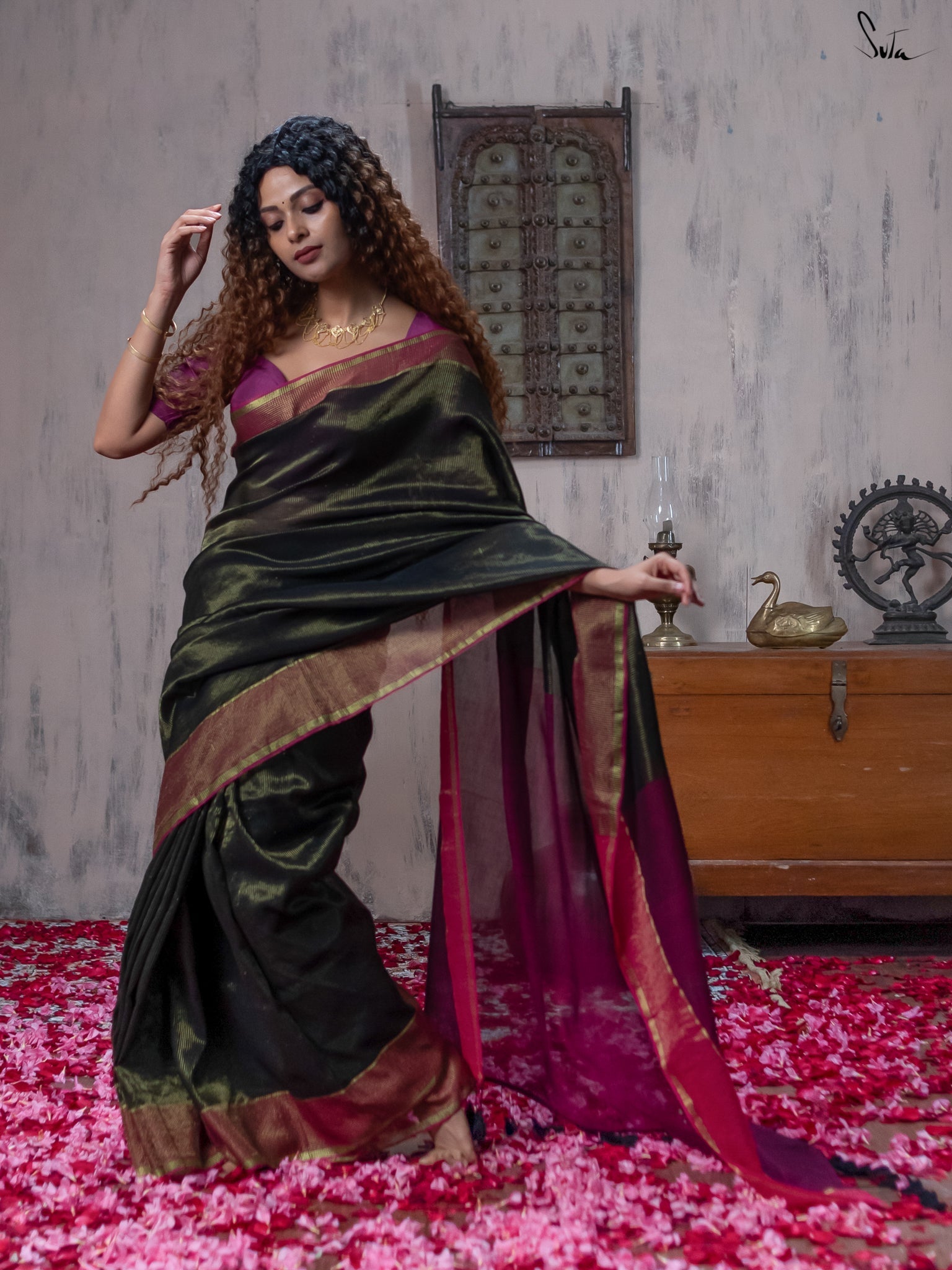 Blouse: The model is wearing XS size blouse called Kshmaya