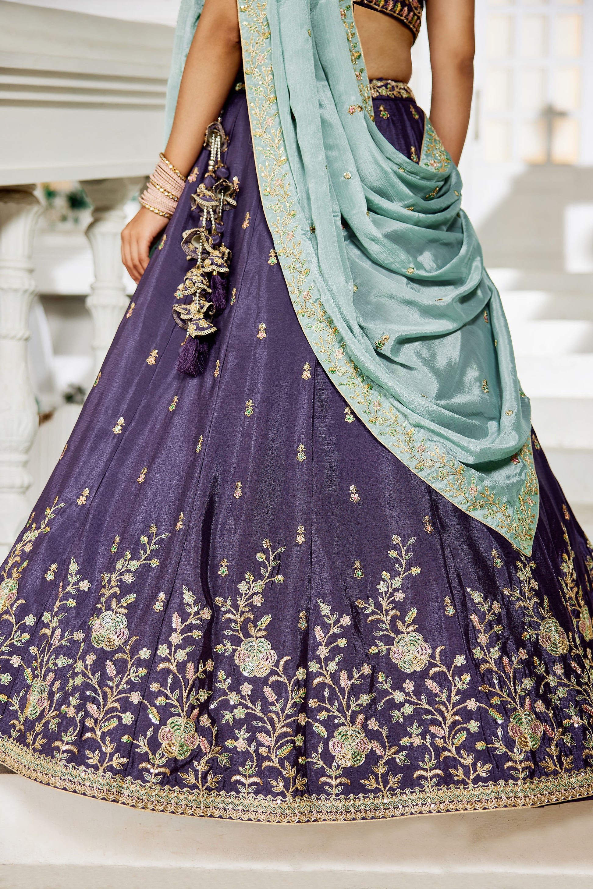 Violet colour Chiffon Sequins embroidery Lehenga choli & Dupatta