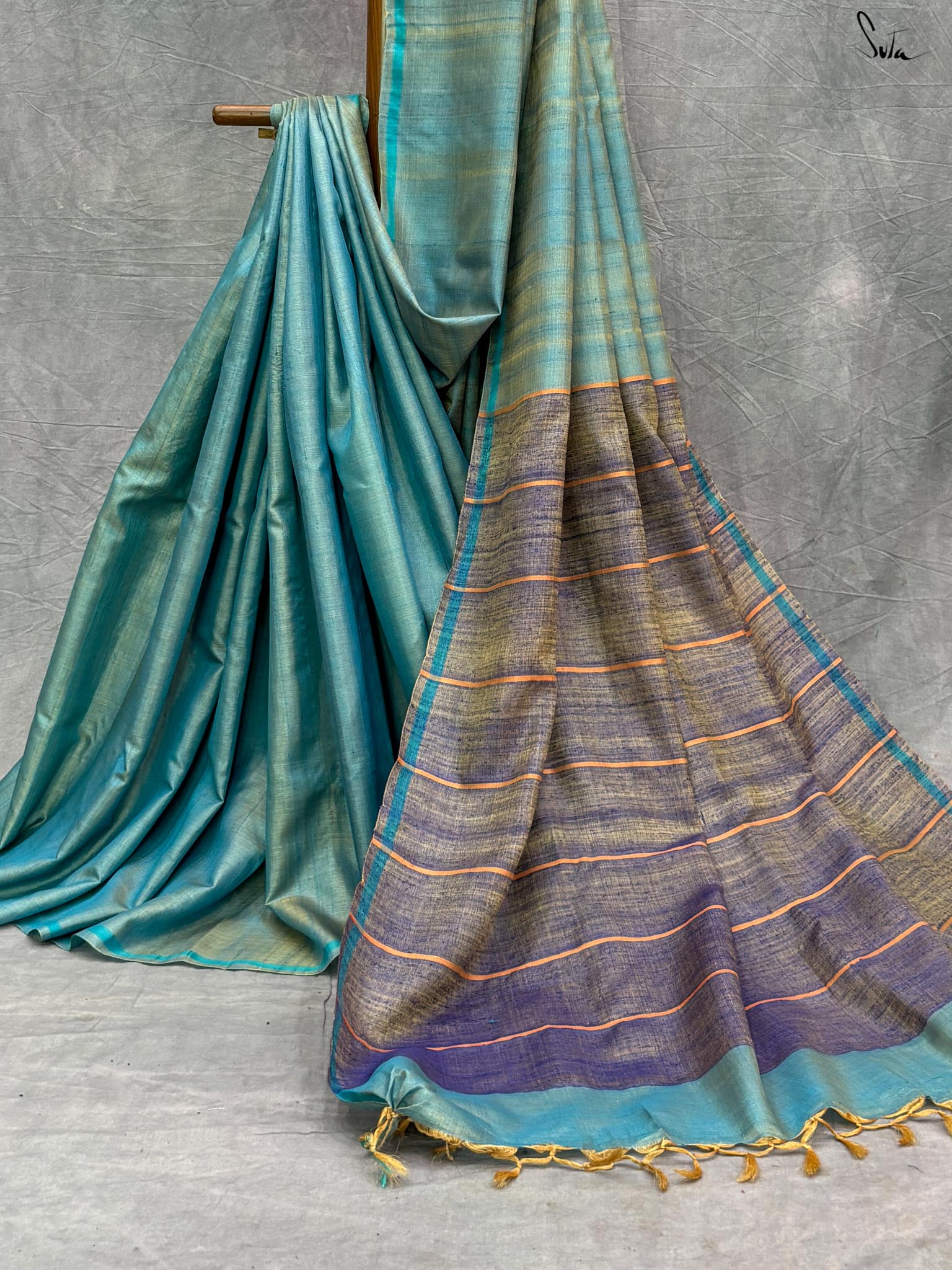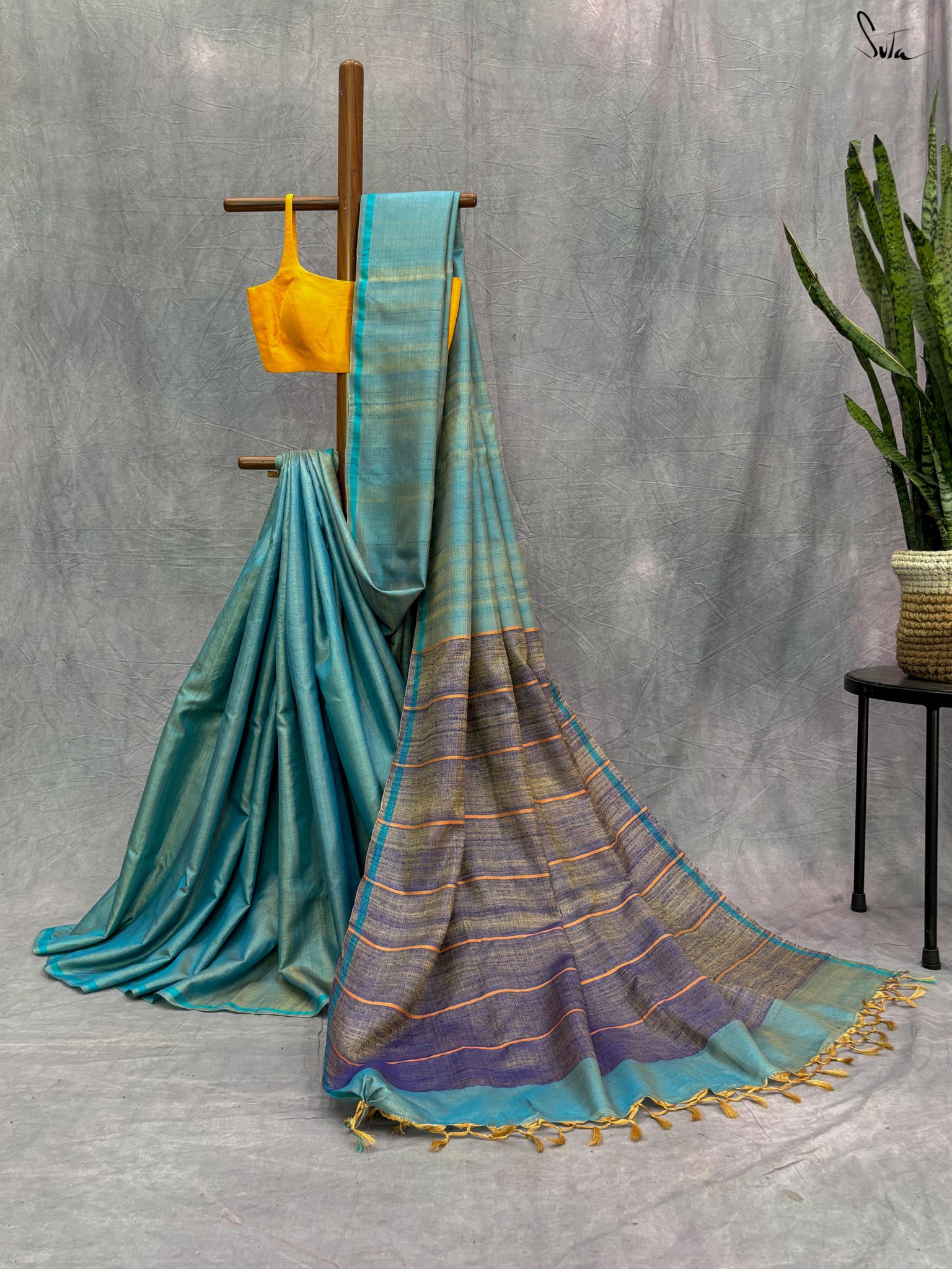 Wear a piece of elegance with this Tussar silk saree with cutwork patchwork designs that make for a gorgeous, spotlight-ready drape!