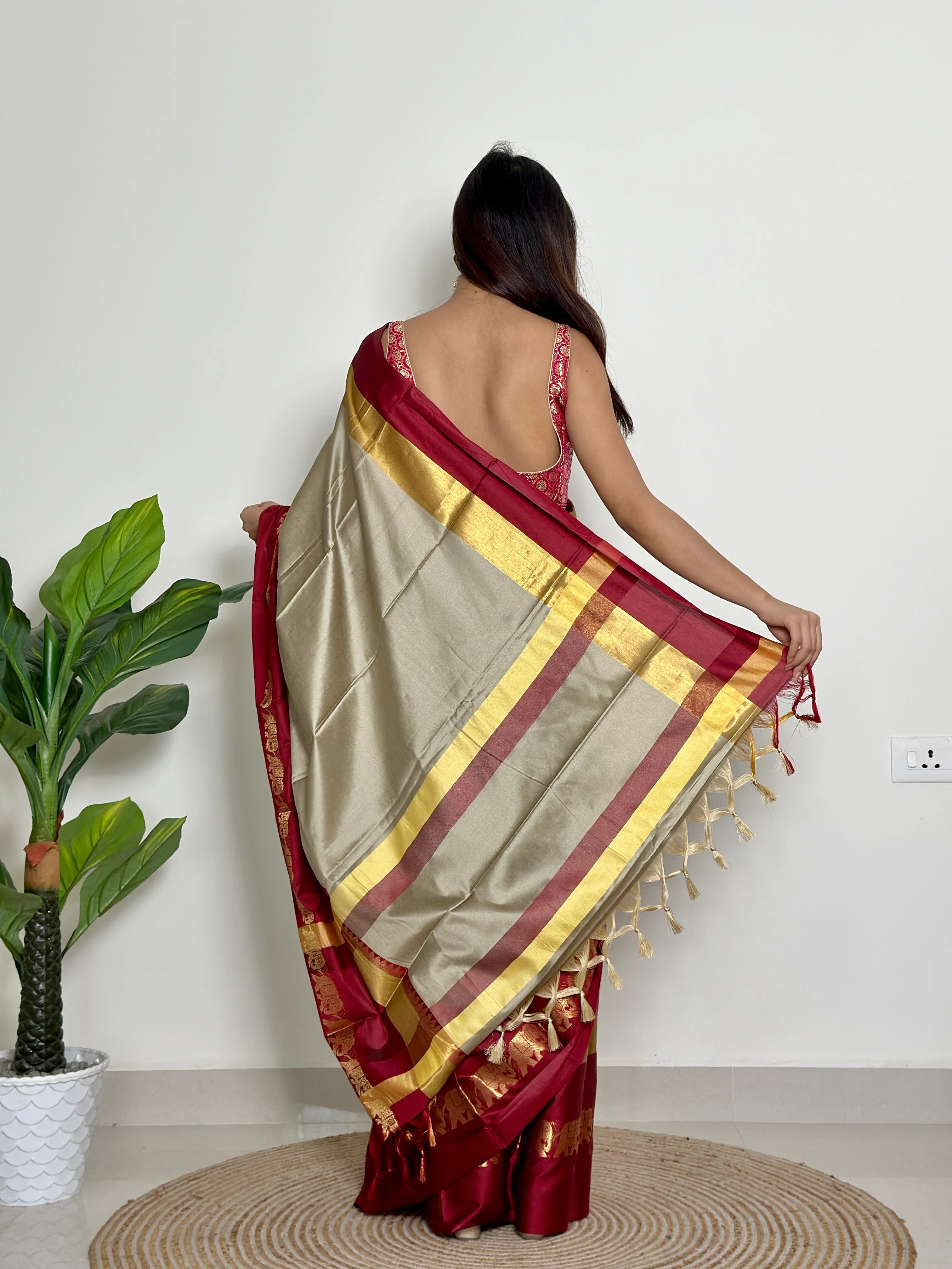 Warm Grey Beige - Handwoven - Silk Saree