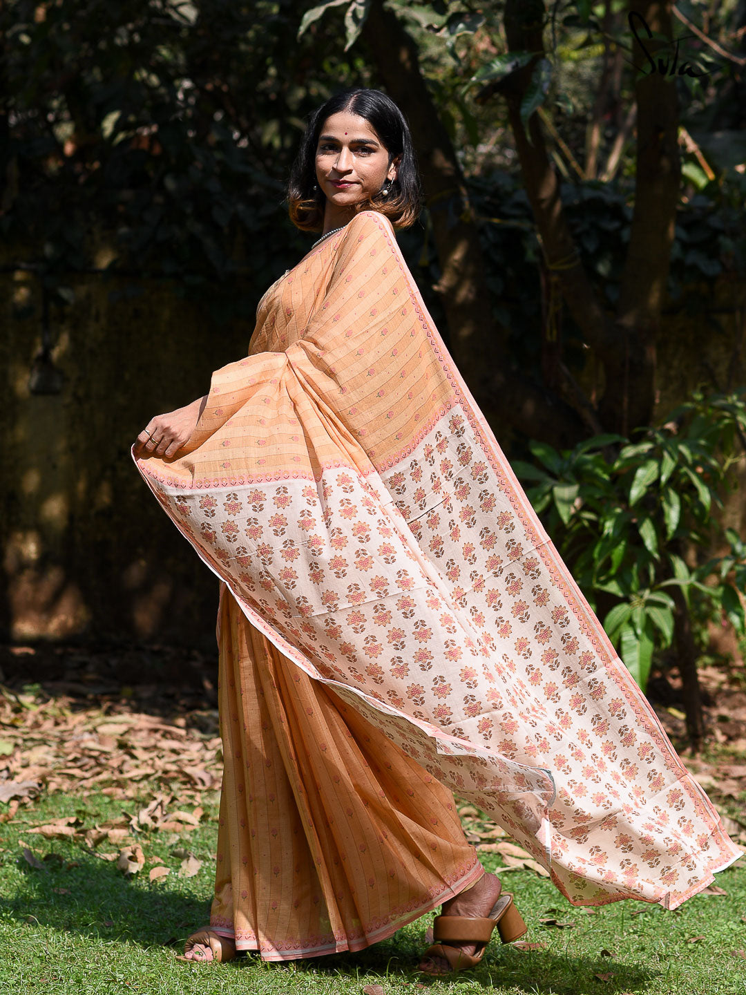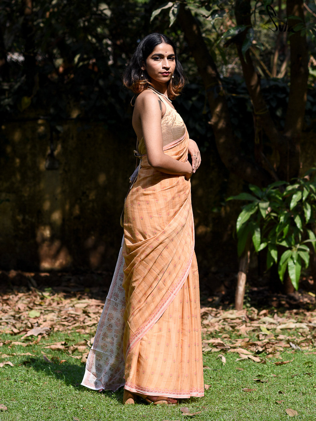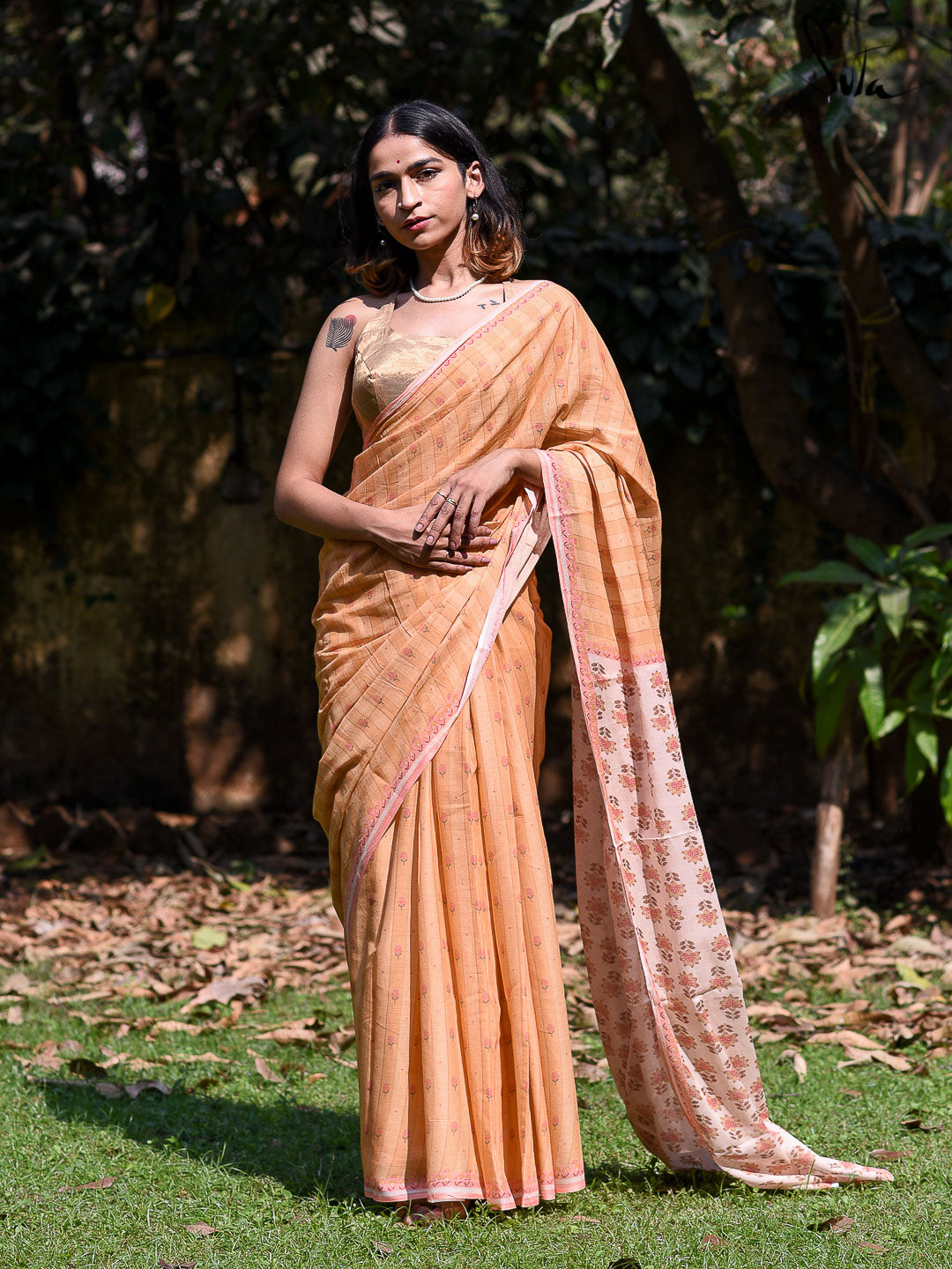 The brilliant yellow of the taxicabs whizzing through the gray. The orange-red gold of the last rays of the fading sun washing over Manhattan. The autumnal foliage in Central Park. The yellows of New York City seep into the soft cotton canvas of this gorgeous woven saree. The delicate florals further add to its gentle femininity.