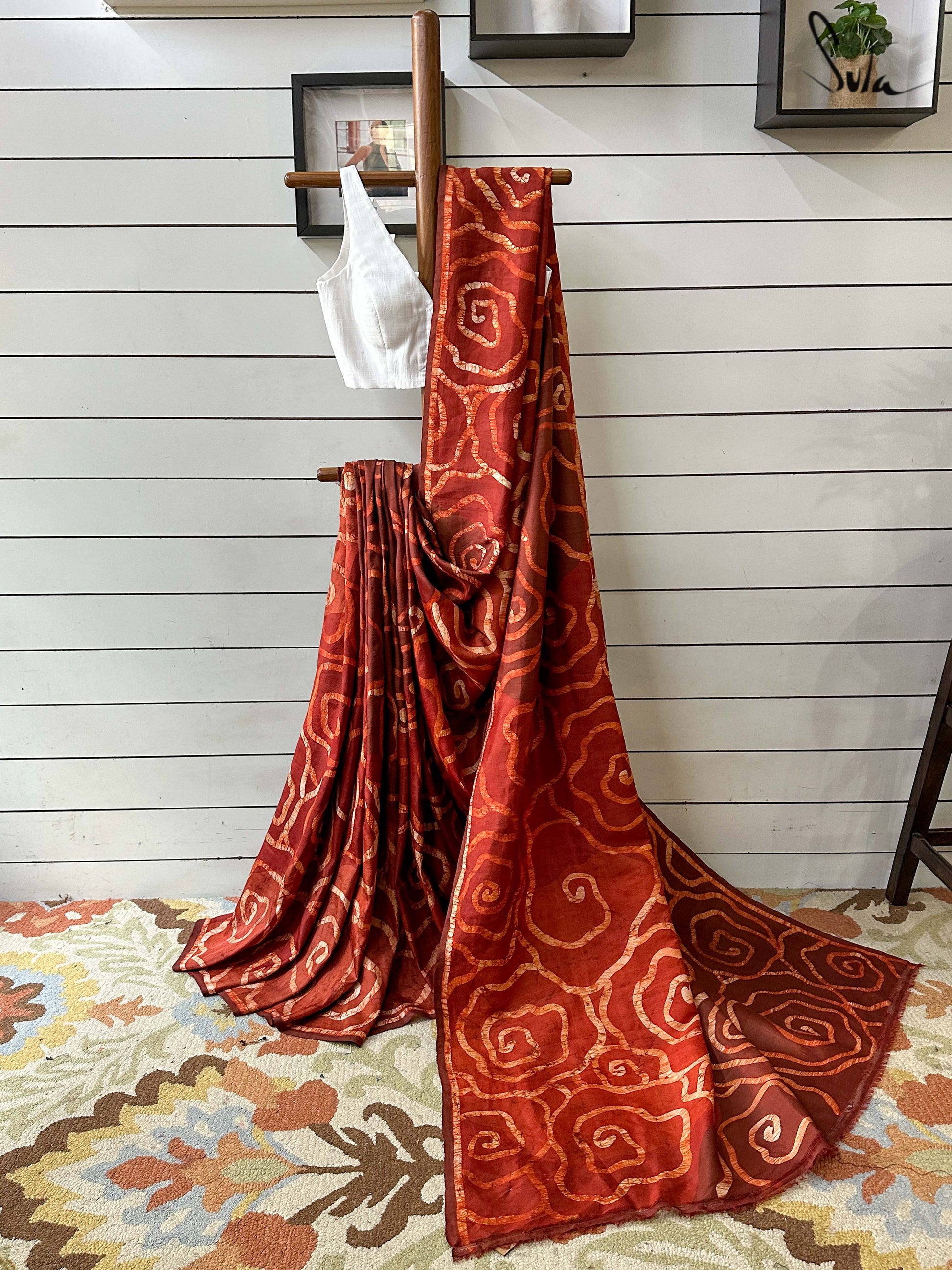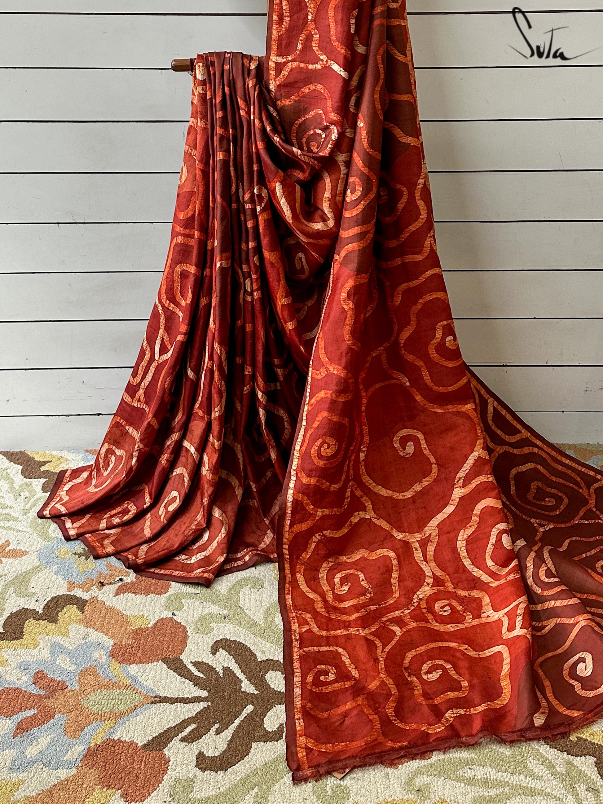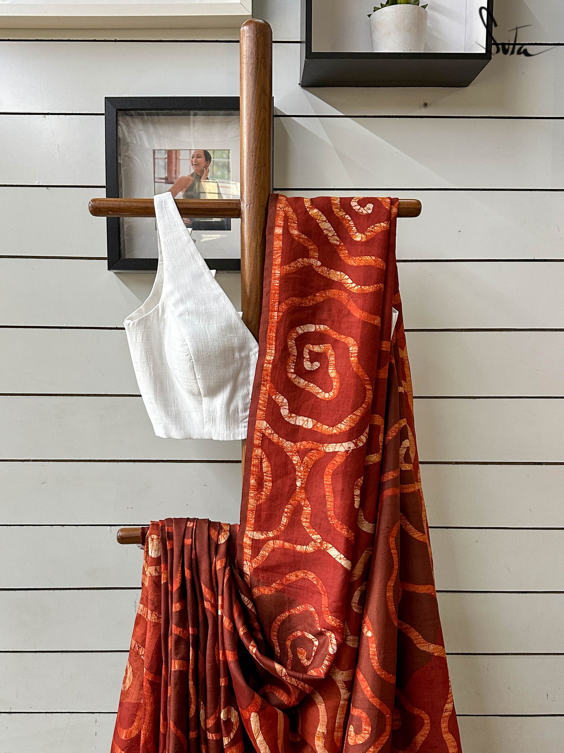 This saree has a running blouse piece woven into it.