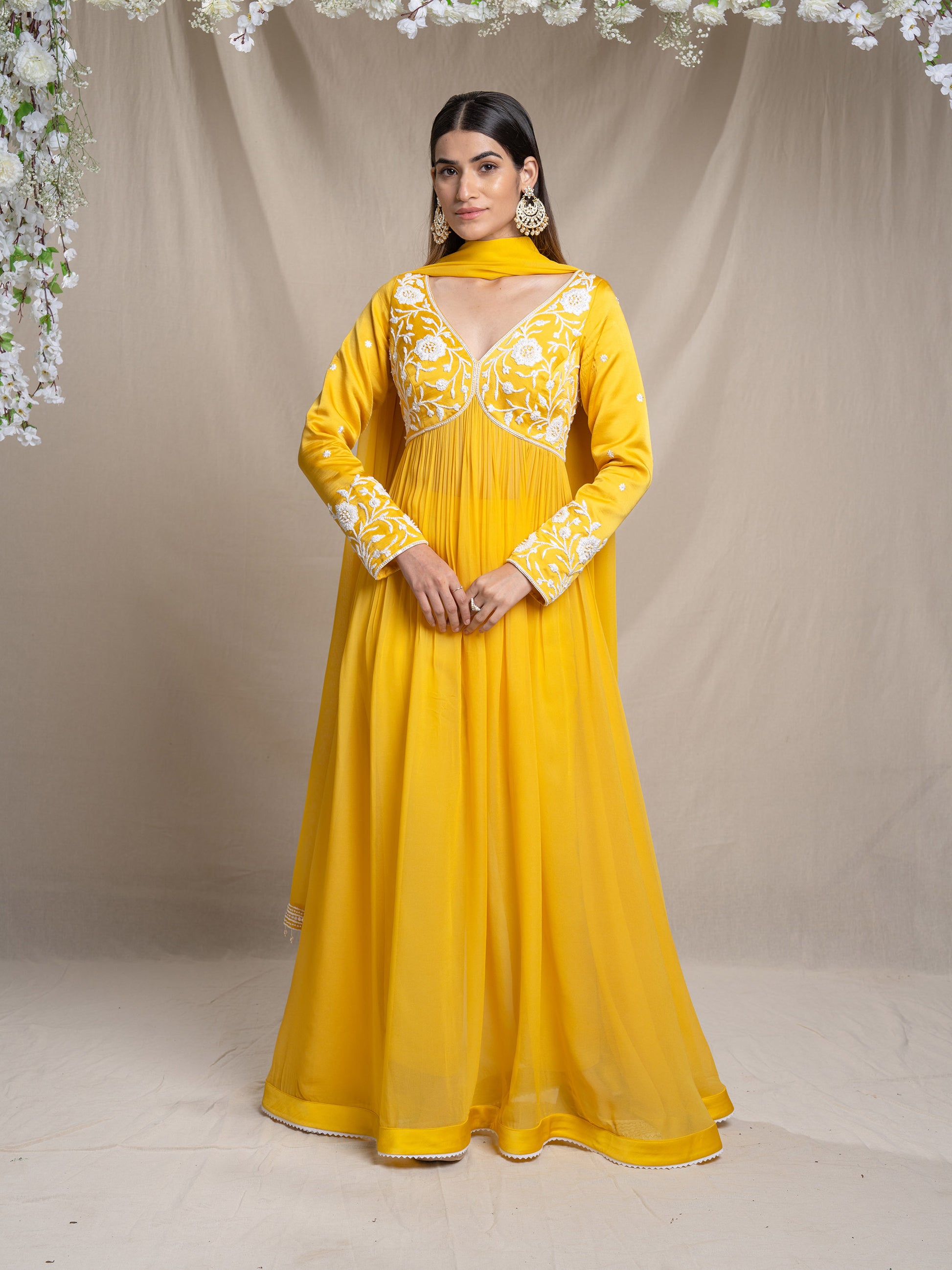 Yellow Anarkali Set With Matching Pants And Dupatta
