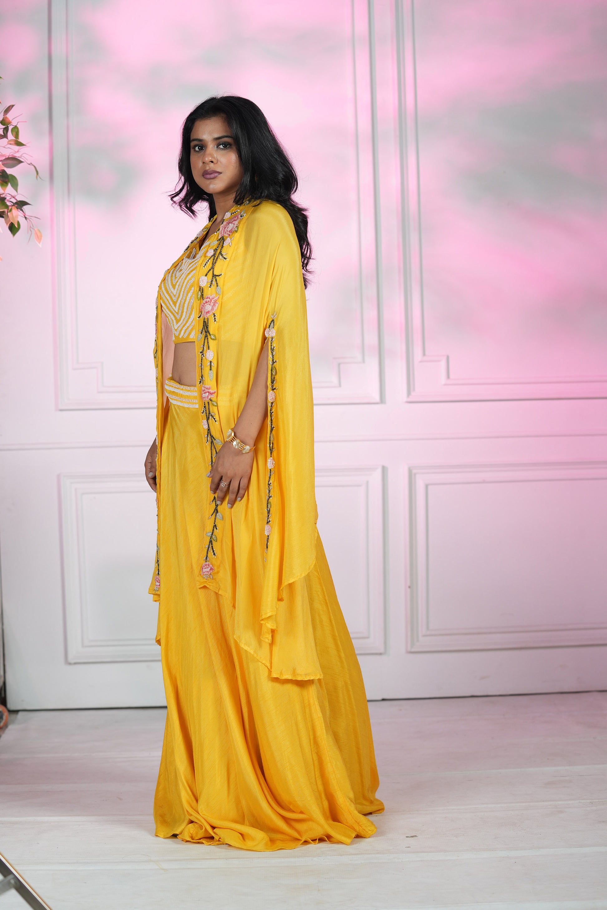 Yellow Dola Silk Cape set