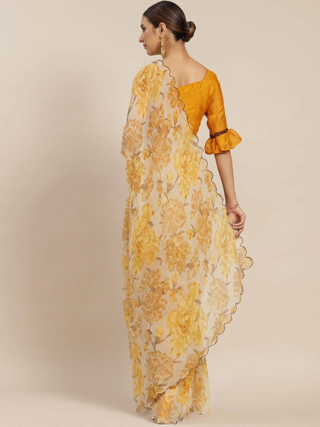 Yellow Floral Printed Poly Georgette Saree
