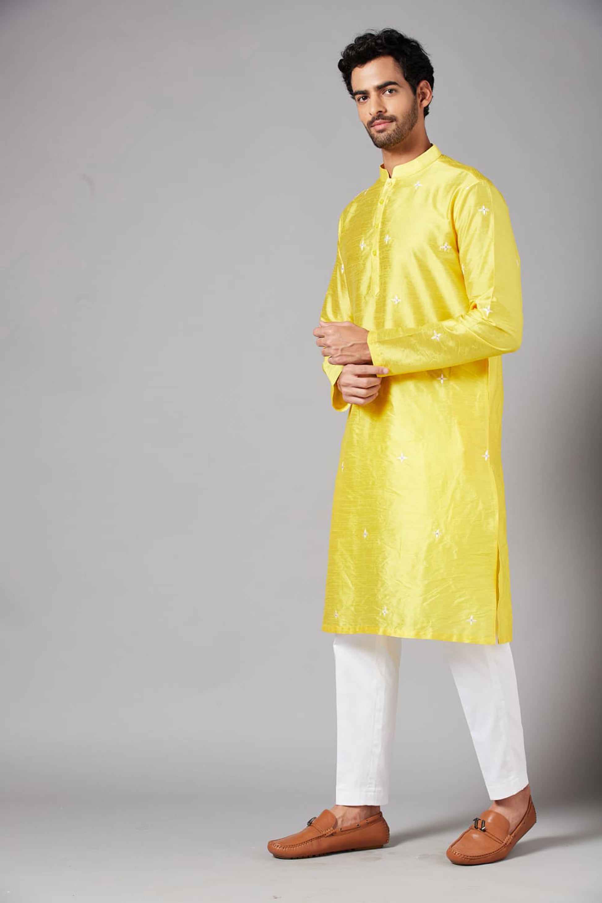 Yellow Raw Silk Thread Embroidered Festive ( only Kurta )