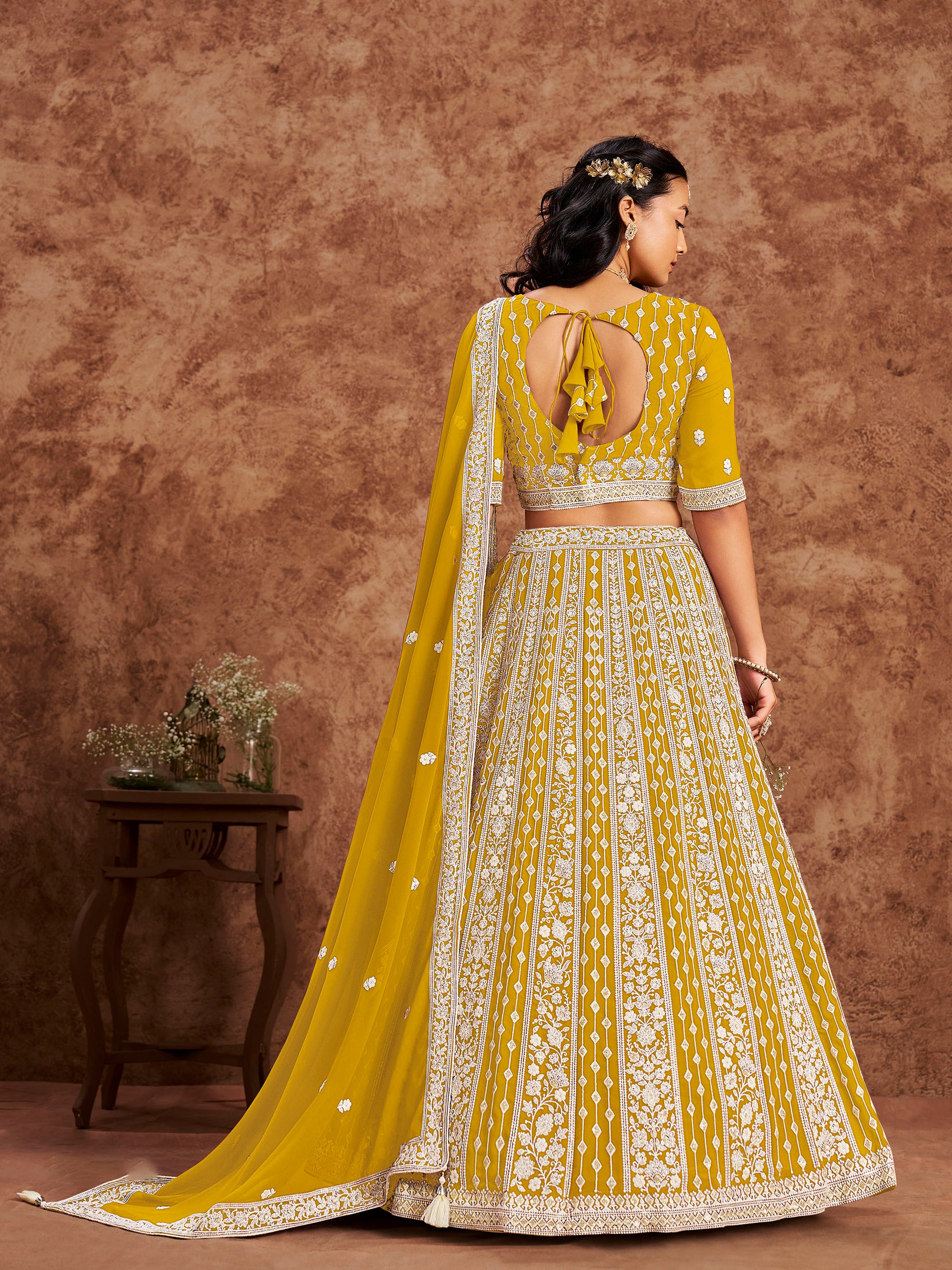 Yellow Sequins & Chikan Embroidered Faux Georgette Haldi Lehenga