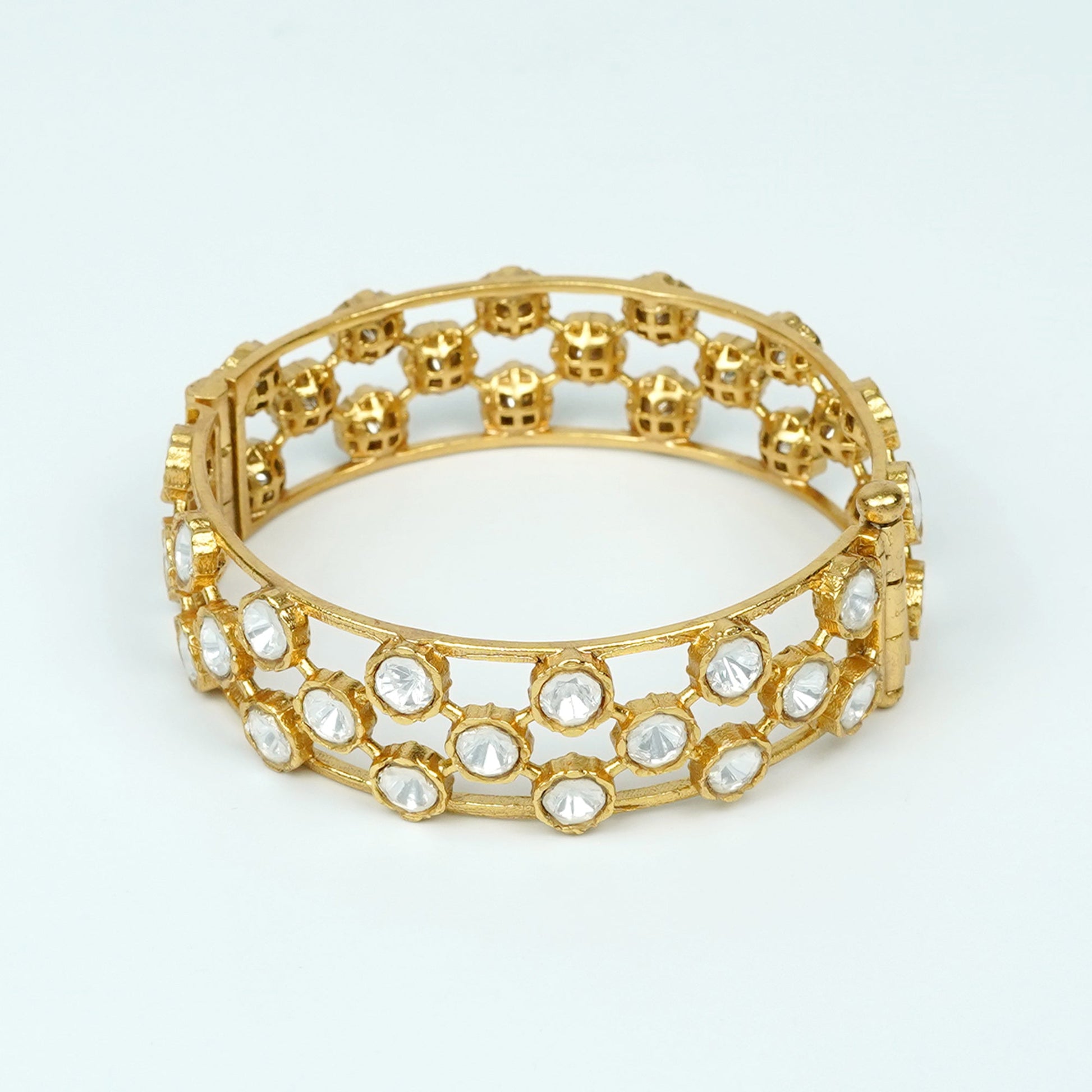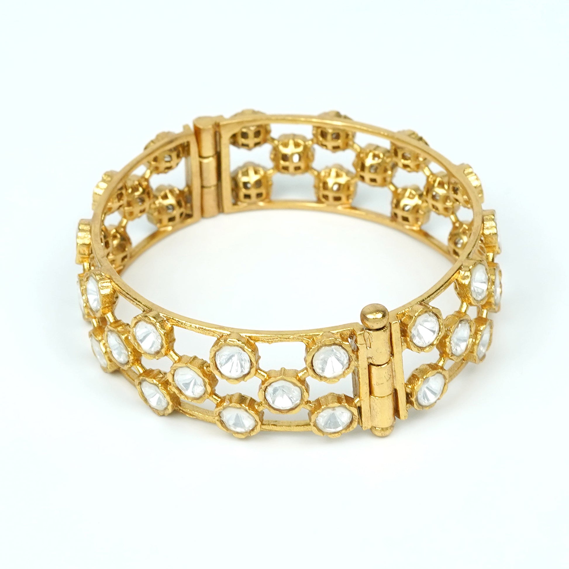 Zevar Club 22K Gold-Plated Handcrafted White Kundan Studded Openable Bangle-Style Bracelet