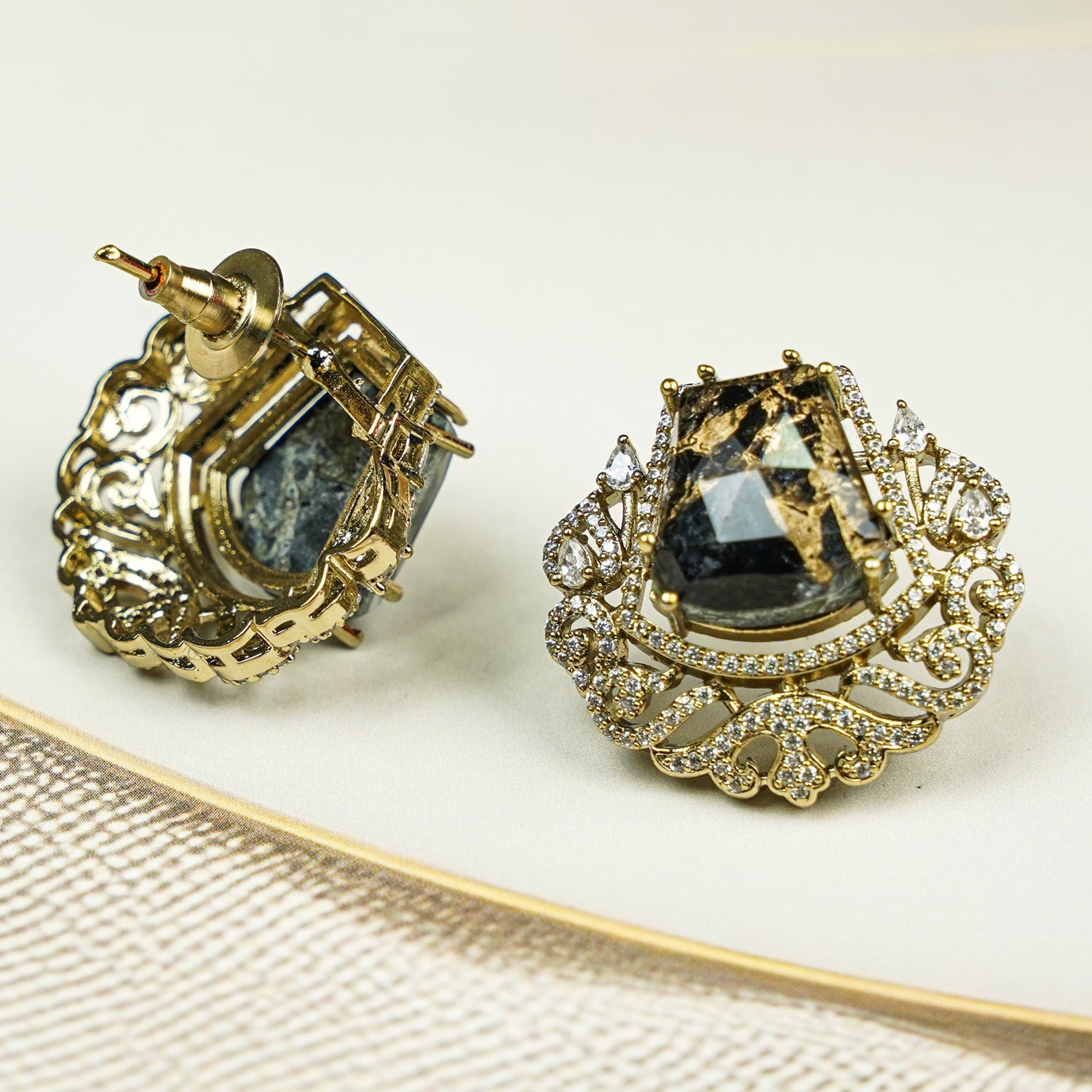 Zevar Club Gold-Tone Smoky Black Stone & AAA Cubic Zirconia Statement Stud Earrings