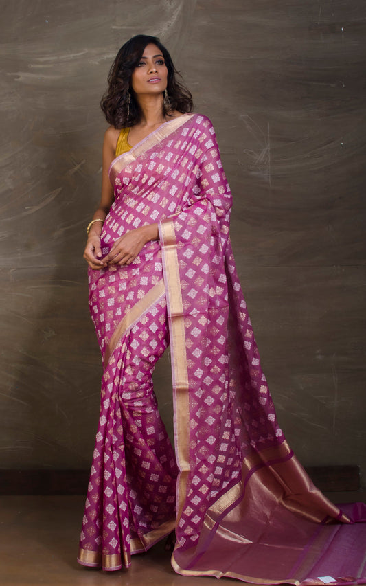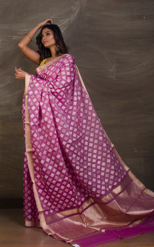 Woven Jacket Nakshi Border Pure Katan Banarasi Silk Saree in Purple, Red and Antique Gold