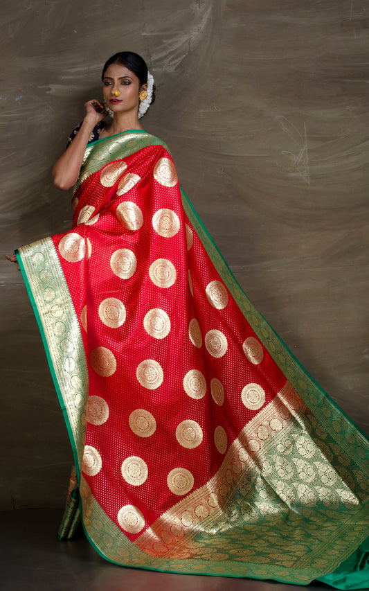 Skirt Border Khaddi Georgette Banarasi Saree in Red, Green and Black