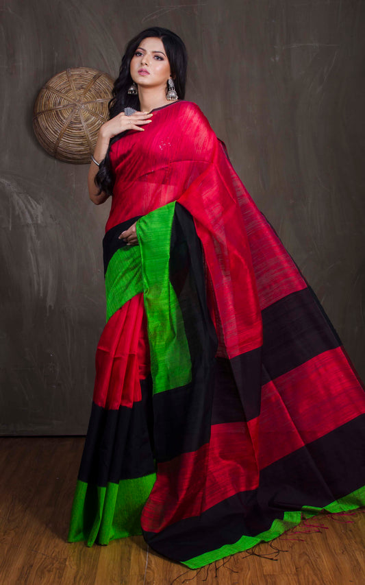 Premium Quality Jangla Jaal Work Muslin Silk Dhakai Jamdani Saree in Black, Red, White and Multicolored Thread Work