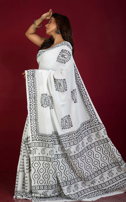 Pure Silk Hand Embroidery Kantha Stitch Saree in Obsidian Black and Multicolored Thread Work