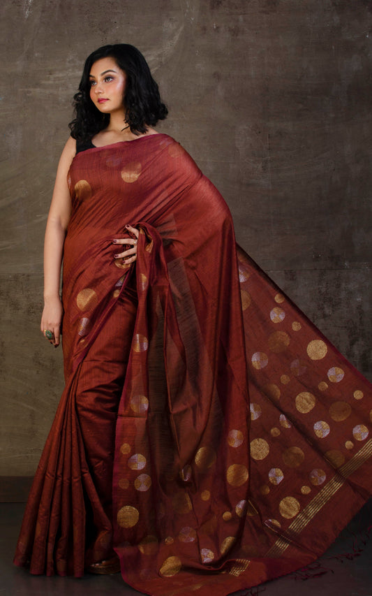 Tussar Cotton Silk Banarasi Katan Saree in Metallic Grey and Copper