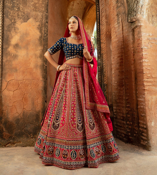 Red Banarasi Silk Sequins & Zari Embroidery Bridal Lehenga