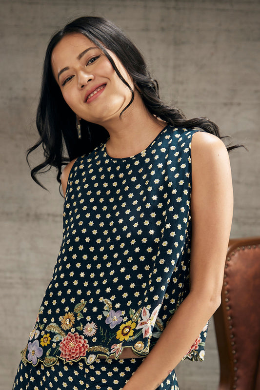 Navy Blue Digital Printed Viscose Satin With Hand Embroidery Co-ords Set With Long Shrug
