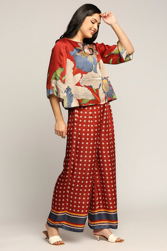 10% off availableWine Digital Printed Viscose Satin With Hand Embroidery Co-ords Set