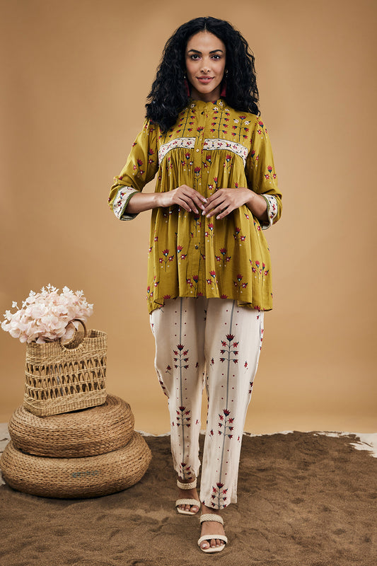 Golden Harvest Mustard Brocade Blazer Set With Pant