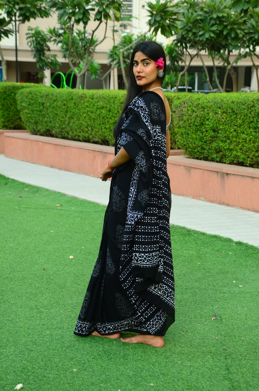 Ocean of Love - Indigo Collection - Blue Cotton Mulmul Bagru Saree