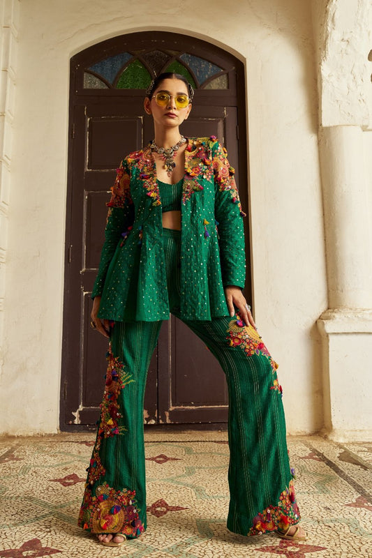 Emerald Epoch Green Tulle Bride's Party Sangeet Gown
