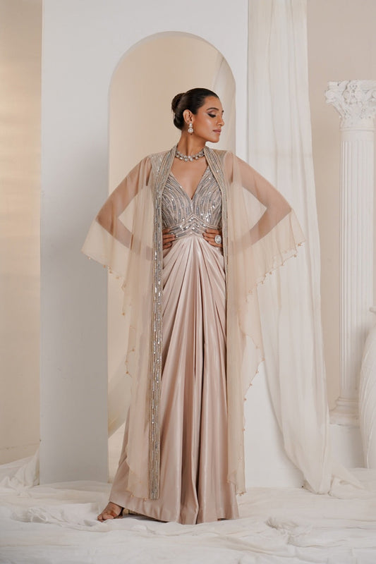 Crystal Sorbet Pink Tulle Sangeet Gown