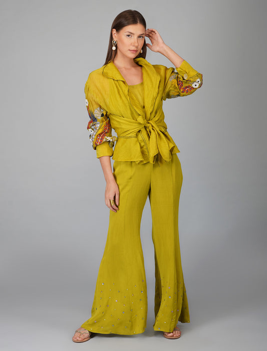 out of stockApplique Sleeve Belted Citrus Green Top Set