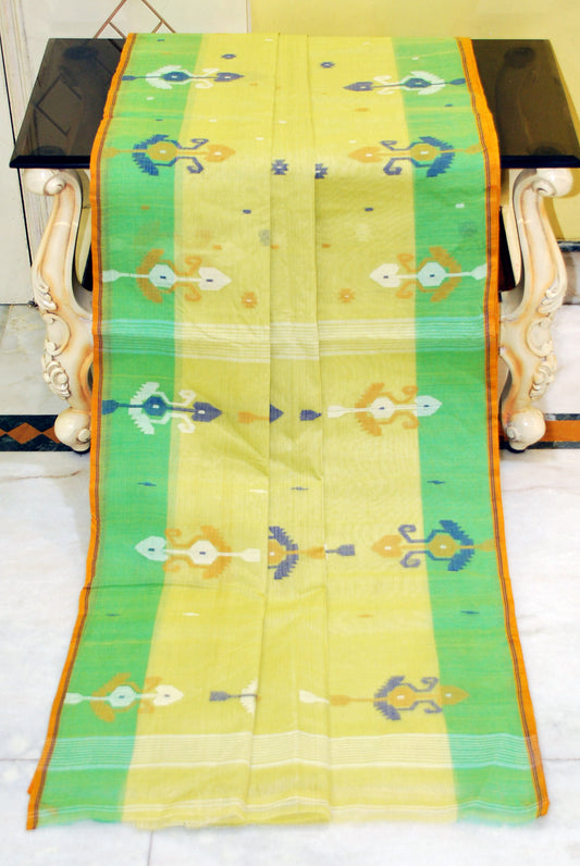 Woven Nakshi Floral Work Soft Jamdani Saree in Off White, Green and Multicolored