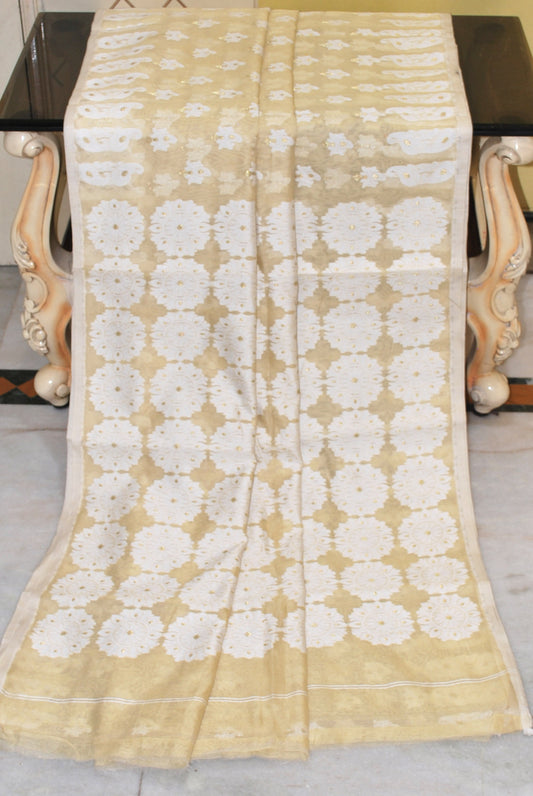 10% off availableSoft Neem Zari Woven Work Jamdani Saree in Beige and Antique Gold