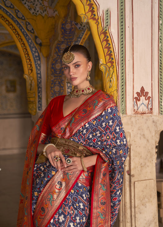 Navy Blue and Maroon Color Patola Paithani Silk Saree for Mehendi