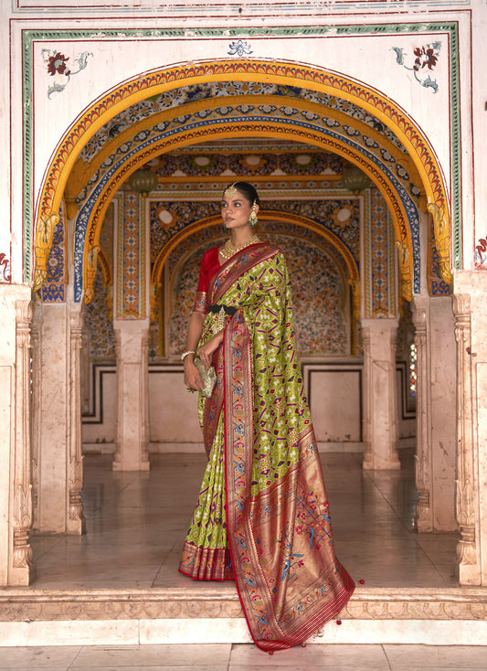 out of stockMehendi Paithani Silk Meenakari Zari Woven Saree