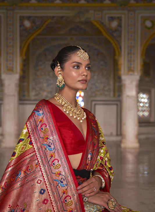 Green and Maroon Color Patola Paithani Silk Saree for Mehendi