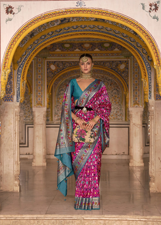 Pink and Blue Color Patola Paithani Silk Saree for Mehendi
