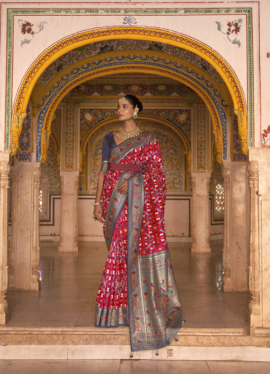 Red and Lilac Color Patola Paithani Silk Saree for Mehendi