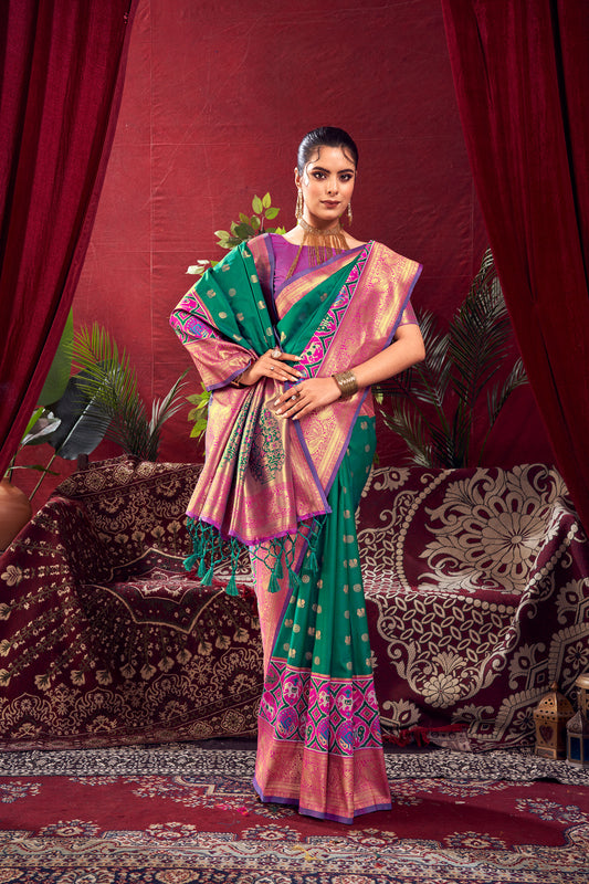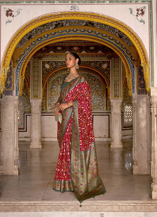 Red and Green Color Patola Paithani Silk Saree for Mehendi