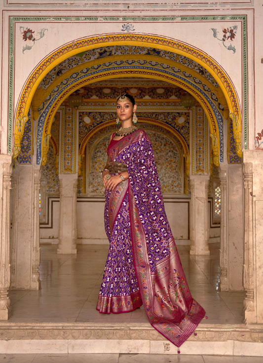 Purple and Maroon Color Patola Paithani Silk Saree for Mehendi