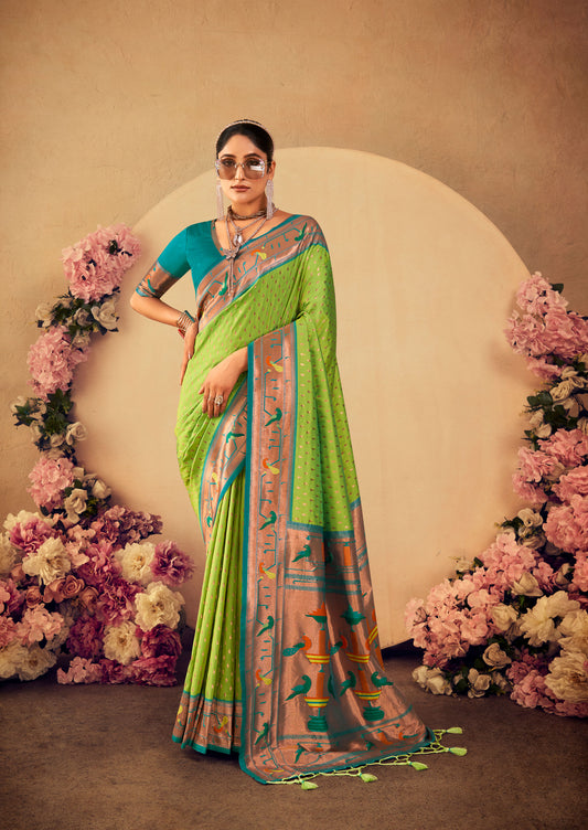 out of stockPista Paithani Silk Zari woven Butti Saree