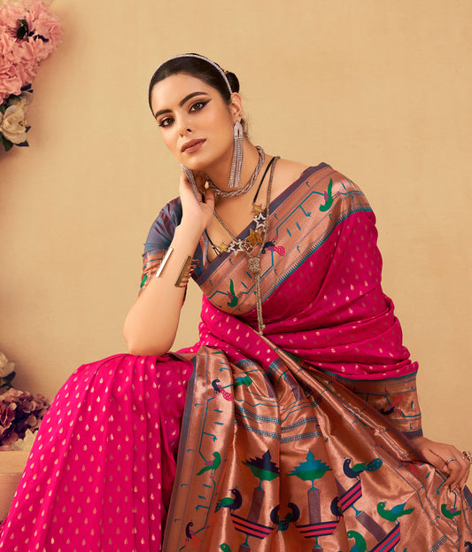 10% off availableRani Pink Zari Woven Paithani Silk saree