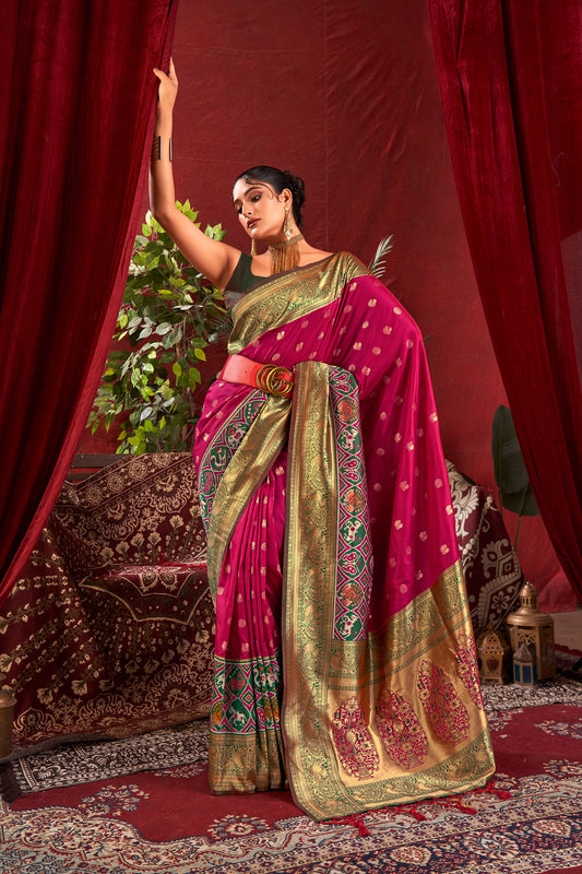 Nidhi Wine Paithani Silk Zari woven Patola Border Saree