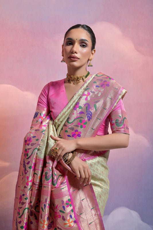 Off White Korra Tissue Paithani Zari Saree